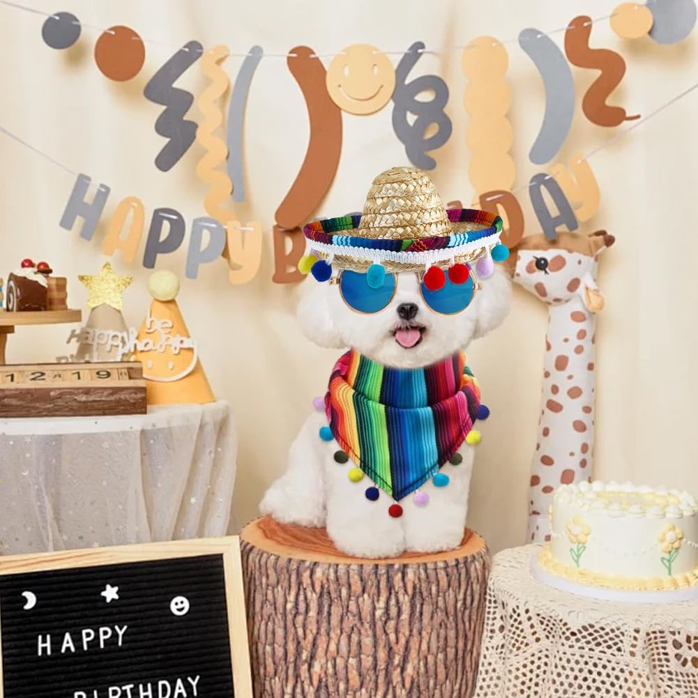 9-Piece Mexican Dog Costume Set - Cat Bandana, Triangle Bib, Sombrero, Pet Mustache Decoration, Sunglasses Decoration