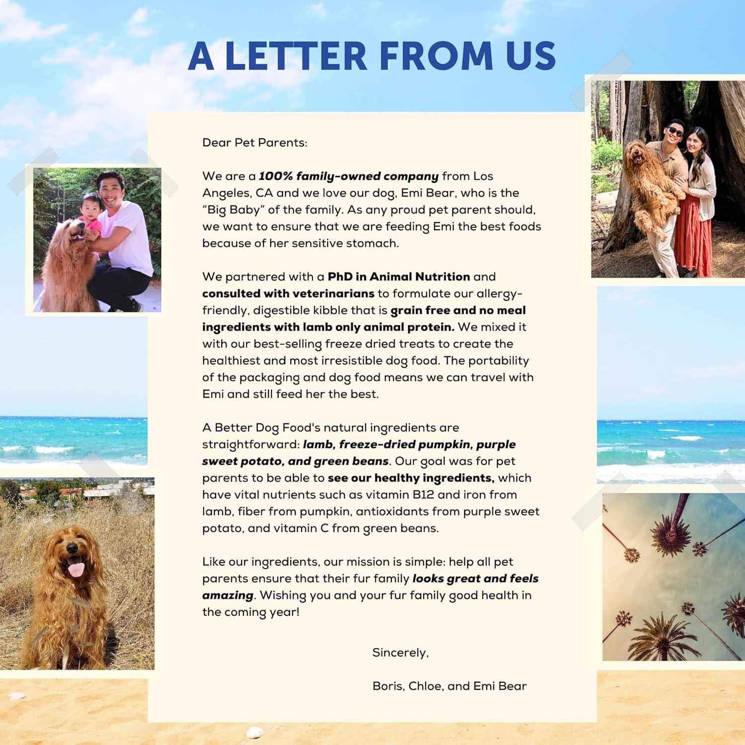 About this item ALLERGY FRIENDLY FOR SENSITIVE STOMACHS– For healthier and smoother digestion our food has no chicken, no meal ingredients, no grains, and only lamb animal protein. We designed this for pets with allergies, intolerances, a sensitive stomach, or just pets that want clean, healthy dog food. RAW YOU CAN SEE INGREDIENTS FOR REAL HEALTH BENEFITS: We’ve mixed our freeze dried raw pumpkin and air dried purple sweet potato to further supplement digestion and aid in food transition. We also added our freeze dried raw lamb and green beans to help entice picky eaters to chow down. We use these simple ingredients so pet parents can see the quality of the whole food ingredients we use. The kibble is formulated by a Ph. D. in Animal Nutrition and is AAFCO approved and uses salmon as the #1 ingredient! FREEZE DRIED RAW PIECES: We’ve used our bestselling single ingredient freeze dried lamb with freeze dried pumpkin and green beans to boost nutrients such as Omega 3 and fiber. Freeze drying is the best way to preserve natural nutrients, with over 61% more nutrients retained relative to dehydration or cooking. Most importantly you can see the quality whole food ingredients we are using! THE BEST RAW FRIENDLY DOG FOOD: A Better Dog Food mixes allergy friendly ingredients and probiotics in our kibble with freeze dried raw treats in one bag. A complete and balanced nutrition for dogs of all types, including small breeds, puppies, and seniors. We also use a sturdy resealable bag to make it easier to grab and go! A BETTER DOG FOOD, YOU CAN TRUST: Our dog food is made with real, recognizable ingredients you can see! No chicken, no meal ingredients, grain free, minimally processed, and only lamb animal protein to make a highly digestible allergy friendly healthy and natural food. A Better Dog Food is made in the USA and our mission is to deliver the healthiest, most irresistible dog food to our fellow pet parents! › See more product details