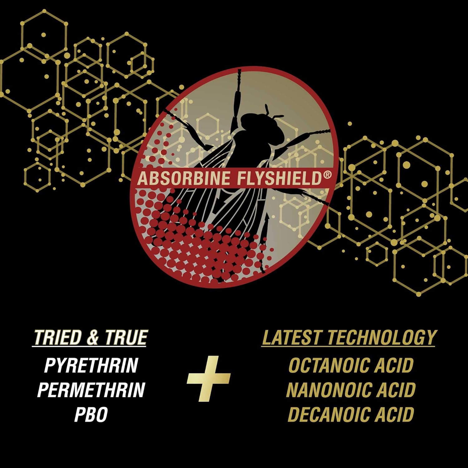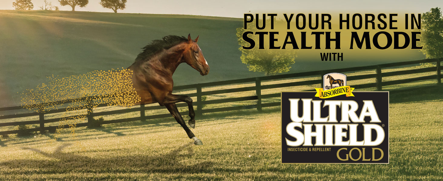 About this item FLYSHIELD DISRUPTS BUGS: UltraShield Gold delivers exceptional repellency and protection from biting insects by disrupting their ability to locate and land on your horse BEFORE THEY BITE: Kill and repel over 100 insects (flies, ticks, mosquitoes, and more) before they bite NO MIXING NEEDED: Ready to use, water-based formula has a bright, pleasant aroma with notes of citrus and leather LONG-LASTING: Long-lasting repellency for your horse or barn/premise stays active for up to 17 days & lasts in all weather conditions INNOVATION FROM USA: Our field tested, innovative formula uses new Absorbine FlyShield technology, is made in the USA, and is proven effective › See more product details