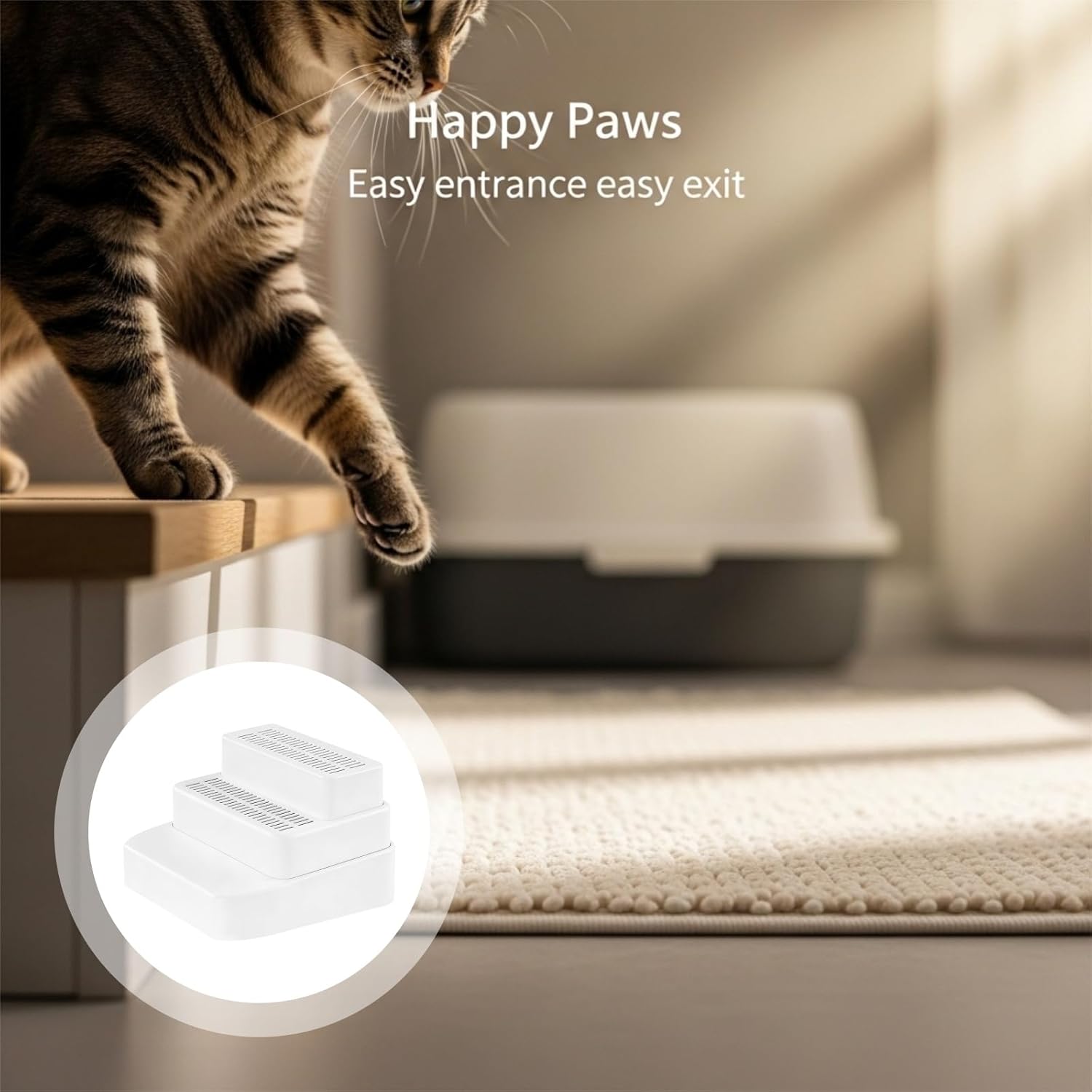 About this item Enhanced Safety & Stability: Features a sturdy three-layer structure to prevent tipping; a top grid to prevent slips, making sure your cat is safe using the ramp; rounded corners eliminate sharp edges, protecting your cat from scratches Cat-Friendly Three-Step Design: The three-step design provides easy access for young cats and senior cats; offers a gentle climb to their litter box; this litter box step design minimizes strain on joints; lets them easily get in and out of their litter box Minimize Litter Scatter: Striped grid design efficiently collects litter; the gridded surface effectively minimizes litter tracking; the ramp filters litter, reducing residue on paws, helping to keep your floors clean and litter-free, which means you'll spend less time sweeping Tool-Free Setup and Easy Maintenance: The product features a straightforward design intended for simple assembly and routine cleaning; wipe down the smooth surfaces, and spend less time on chores and more time pampering your pet with ease Compact & Space-Saving: At just 11.4 in / 29 cm wide, this cat litter stair for small & elderly cats saves valuable space; it's designed to fit seamlessly into any corner; maximizing functionality without compromising your living area › See more product details