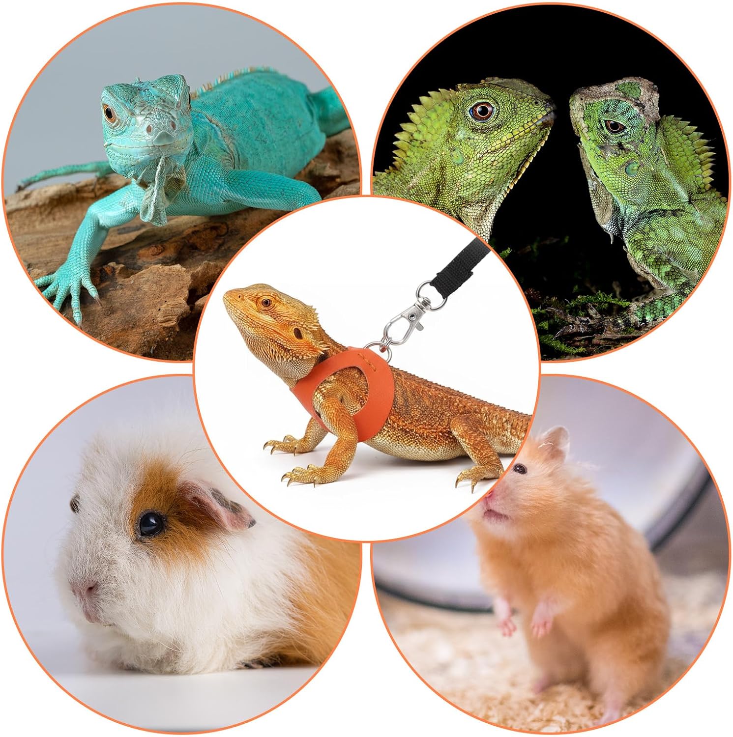 • 【Universal Small Animal Application】Beyond bearded dragons, this versatile harness set accommodates various reptiles and small pets including guinea pigs, ferrets, hamsters, and squirrels. The adjustable design adapts to different body shapes, making it a practical solution for households with multiple small animals.