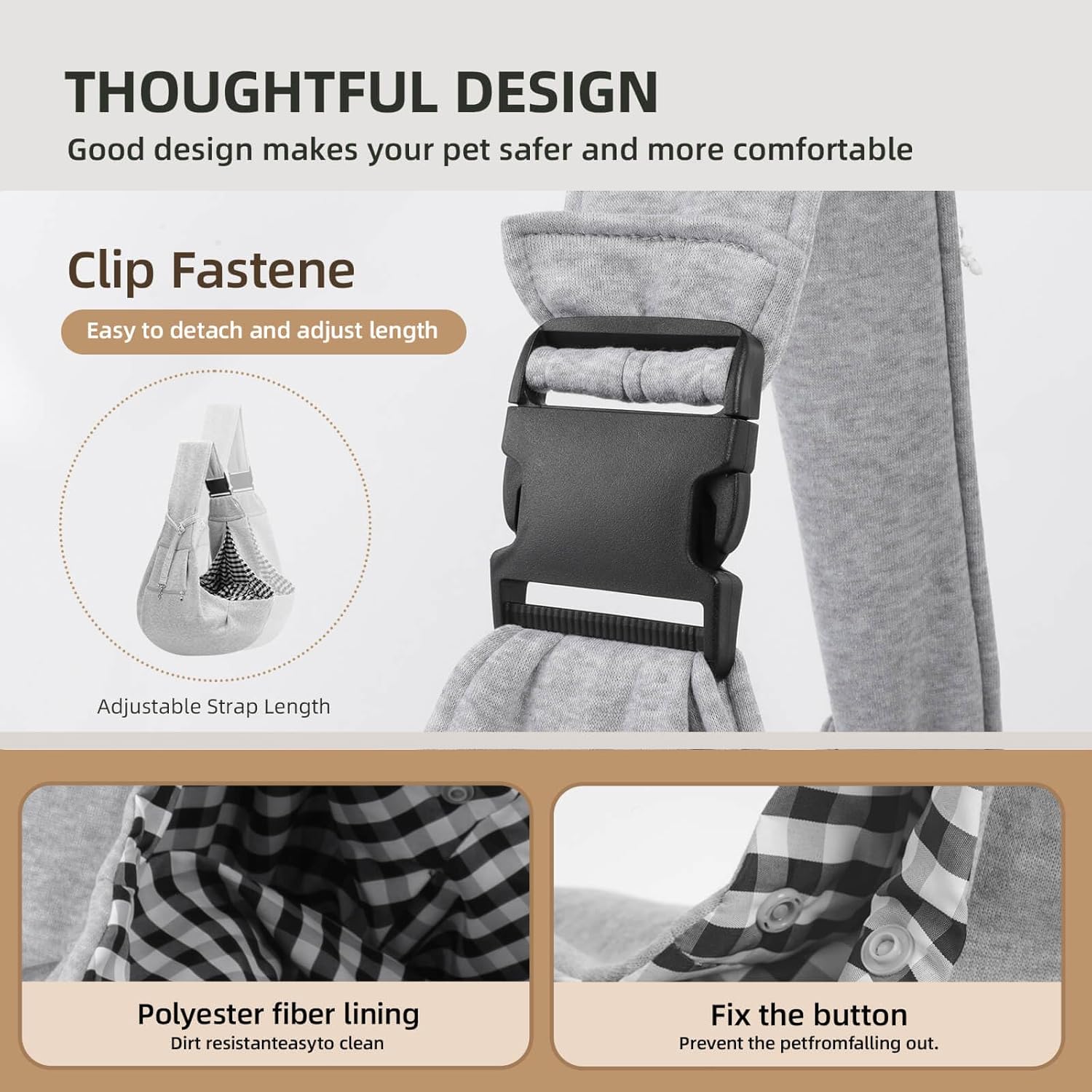 About this item 【Premium Materials And Design】:The dog harness is made of soft and breathable cotton material and soft and breathable fabric, which is skin-friendly and comfortable, making the beloved pet feel comfortable, and the dog carrier sling is machine washable for easy cleaning. 【Adjustable Shoulder Strap】:The shoulders of this dog carrying sling have buckles, the length can be easily adjusted according to your height, and it can effectively relieve sore shoulders. There is a mobile phone pocket on the shoulder strap of the small dog sling, which is convenient for us to put mobile phones or snacks. 【Safety Design】:The dog bag is designed with an adjustable safety hook which links to your pet's collar, to prevent the dog from accidentally falling off. The opening of the puppy sling holder has a safety buckle to prevent the puppy from jumping out mischievously. 【Multi-Purpose】:The large opening of our dog sling carrier for small dogs allows easy pet access, lets your pet enjoy the view with more breathable space. The pet dog sling carrier helps you take your pet into malls, grocery stores, parks, and on daily walks, it can provide a comfortable and skin-friendly place for your pet to stay together happily. 【Product Size】:Dog tote bag size :21 x 12 inches (L x W), adjustable shoulder strap, the straps can be adjusted to 10-27 inches. Auitable for small pets up to 12 pounds. For example: bichon poodle, habanero, chihuahua. › See more product details