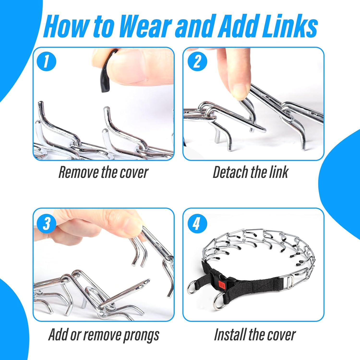 Adjustable Prong Collar for Large Dogs – Durable Metal Dog Collar with Quick Release Buckle, No-Pull Training Pinch Collar for Medium and Large Breeds (L, 20"-21.6")