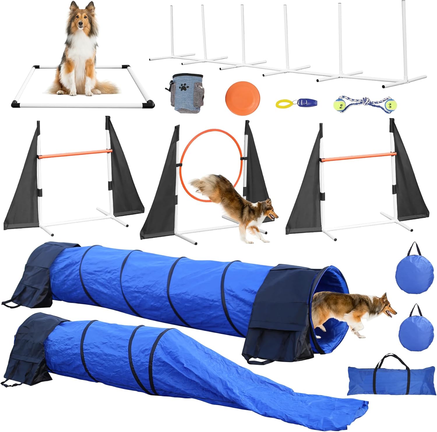 - Included Components: blind tunnel, tunnel, dog hoop, jumps, pause box, weave poles and flying disc