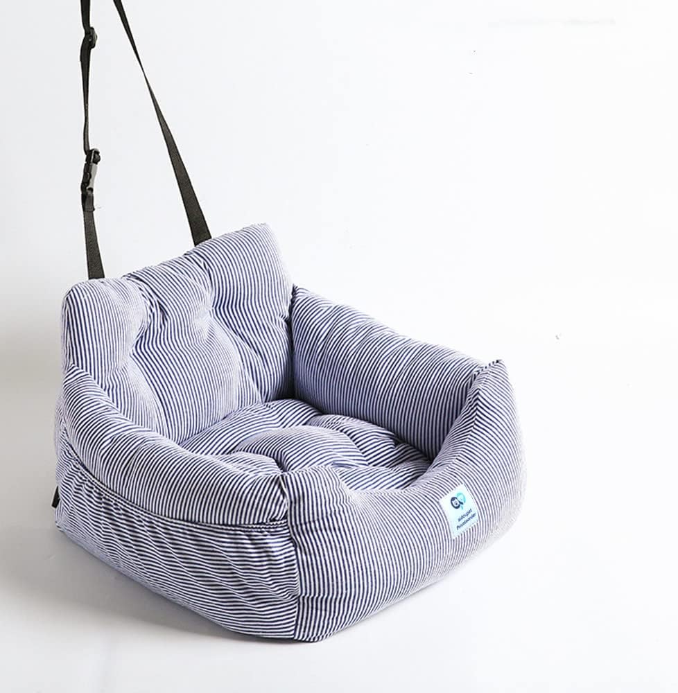 About this item Comfortable and durable:This car dog bed is very soft and comfortable for your pet. which is wear-resistant and not easy to break. This dog booster seat is filled with full and soft polyester fiber, which provides good support and comfort for dogs Safety: This dog car booster seat have braided adjustable safety rope and metal hook can be linked with the dog's collar,The pet is comfortably restrained in the car seat.It can also prevent the dog's sharp claws from damaging the inside of the car General-purpose:The pet car seat is easy to install on most models of cars. Right size and adjustable seat belt make this dog car bed find an ideal position in the front seat and back seat of the car.Most models of cars,our dog seat can be used all season Fashionable and practical:This dog seat comes in four colors and two size for your choice. This dog bed for car is easy to clean, You can put it in the washing machine as a whole for cleaning, and pat it after drying to restore the fullness of filling. NOTES:Our puppy car seats packed in a vacuum bag. After flapping and using, the wrinkles and filling fullness will be restored.Measure the size and weight of the pet before buying. Choosing the right size will make your dogs cats more comfortable. › See more product details