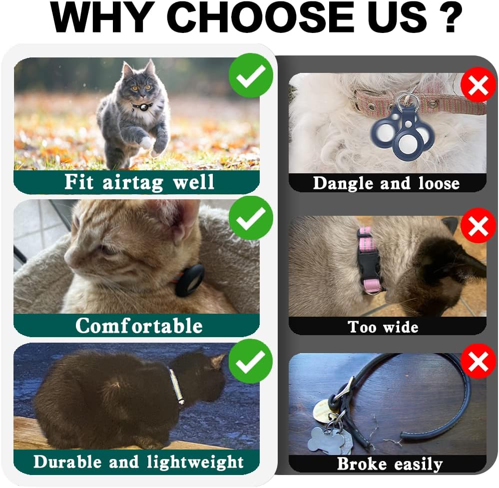 About this item 【TRACK CATS EASILY AND DESIGNED FOR AIRTAG】Our reflective cat collar comes with an elastic airtag case, which can well protect your airtag device and prevent airtag from falling off or dangling. This airtag cat collar is exactly what you need, it allows you to easily find the location of your pet. 【SAFE BREAKAWAY BUCKLE DESIGN】Our airtag cat collars feature sturdy breakaway buckle, which allows your cat to quickly break free when it is in danger outdoors or hanging on a tree. In addition, the AirTag cat collar has a reflective strip so you can easily find your cat at night. This makes it safer for cats to chase or play outside. 【COMFORTABLE AND FUR FRIENDLY MATERIAL】Made of reflective nylon rather than silicone, this kitten collar will not rub off fur or hurt skin and protect cat’s neck from irritation. 【MINIMALIST AND LIGHTWEIGHT】With the adjustable length from 8.66 - 13.78 inches, you can easily find the comfortable size for cats. Lightweight airtag holder and 0.4" wide strap, your cat won't feel any discomfort wearing it for a long time, so don't worry about the cat collar been clawed at or chewed on. 【WATERPROOF AND EASY TO CLEAN】The waterproof airtag holder protects the airtag better. And it also wipes off dirt and grime easily. So just be relaxed and let your kitty have a good time! › See more product details