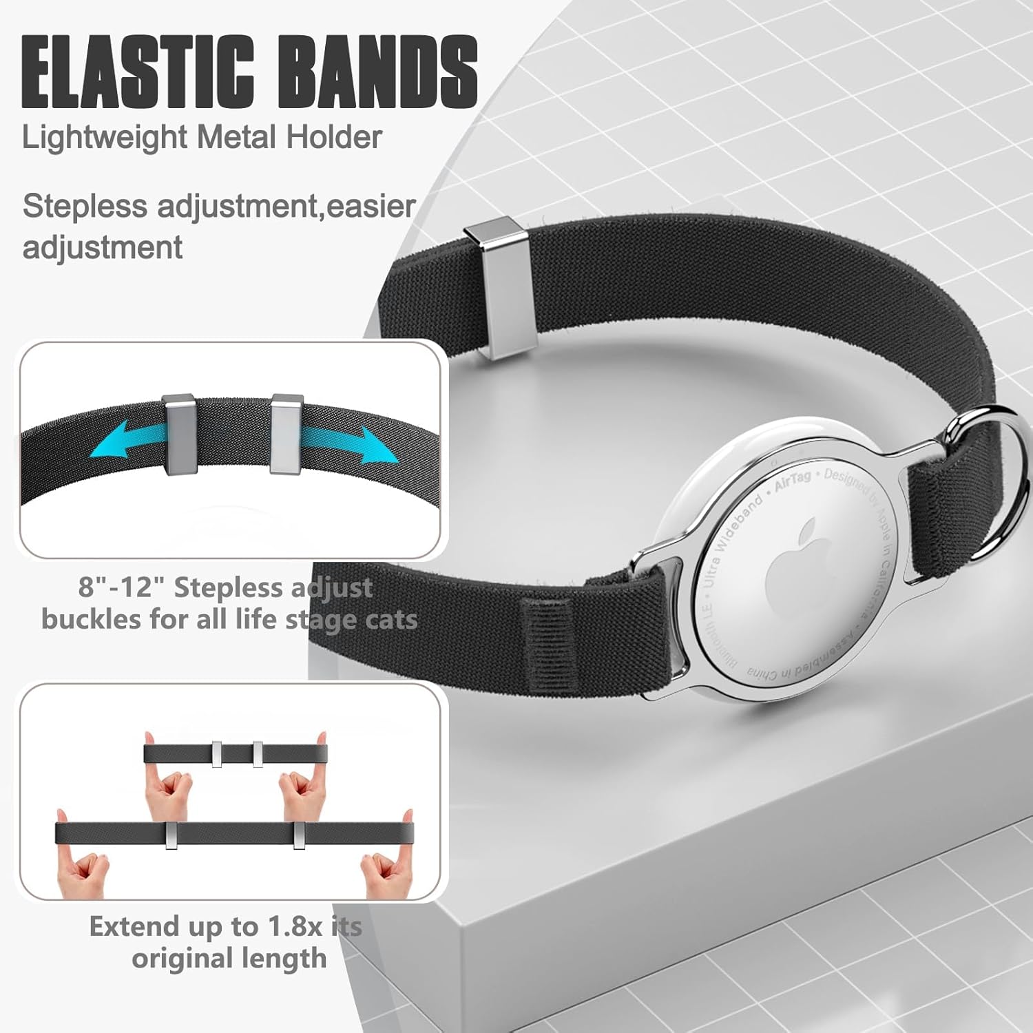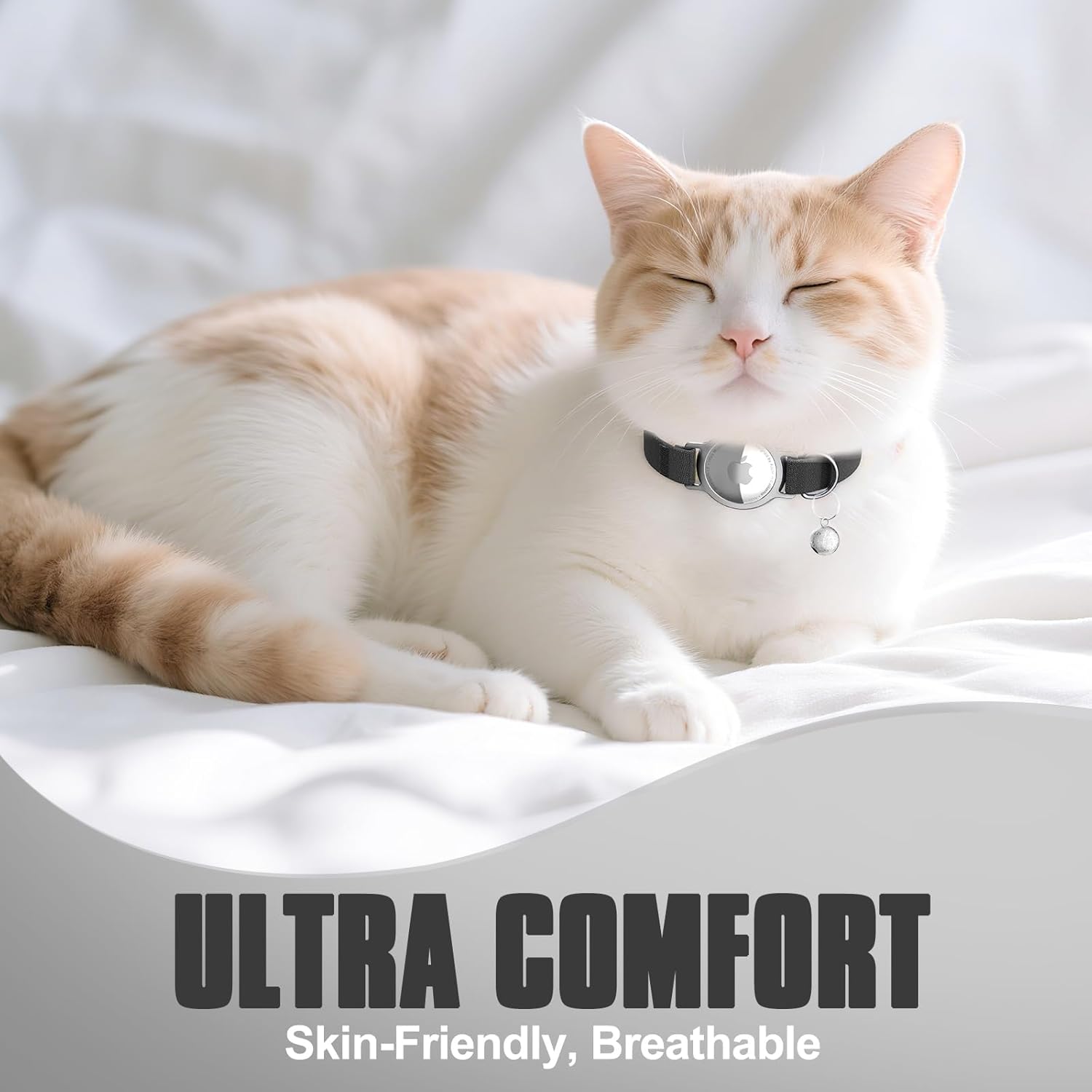 About this item Integrated Design: Our AirTag Cat Collar features a built-in AirTag metal holder, 1:1 compatible with apple airtag, meticulously crafted for maximum comfort and reliability. preventing any shaking or detachment. Using this Cat Tracker collar will make it easier for you to find your cat. (Note: AirTag is not included). Stepless Adjustment: Designed for a perfect fit and aesthetics, the cat collar AirTag holder provides seamless comfort with its smooth, hassle-free adjustment. Say goodbye to guessing or pulling. NOTE: This is not a breakaway collar, it uses elastic properties to prevent your cat from choking. Grace Meets Lightness: This airtag cat collar weighs only 0.2 ounces (roughly 6g). The webbing is made of durable polyester webbing and the Cat AirTag collar stretches 1.8 times for a comfortable fit and is rigorously tested to withstand over 10,000 scratches. Premium Material: The Air Tag Cat Collar is made from premium polyester fabric, the hypoallergenic anodized aluminum alloy ring of the Pet Tracker for Cats is lead-free, nickel-free, non-irritating, and safe for your cat's skin. Simple to Adjust & Versatile Fit: Equip your feline adventurer with our adjustable Airtag Collar Cat, designed to comfortably fit cats of all shapes and sizes. The smooth stepless adjustment ensures a snug yet comfortable fit—so lightweight, your cat might just forget it’s there, while the collar works its magic to stay securely in place. › See more product details