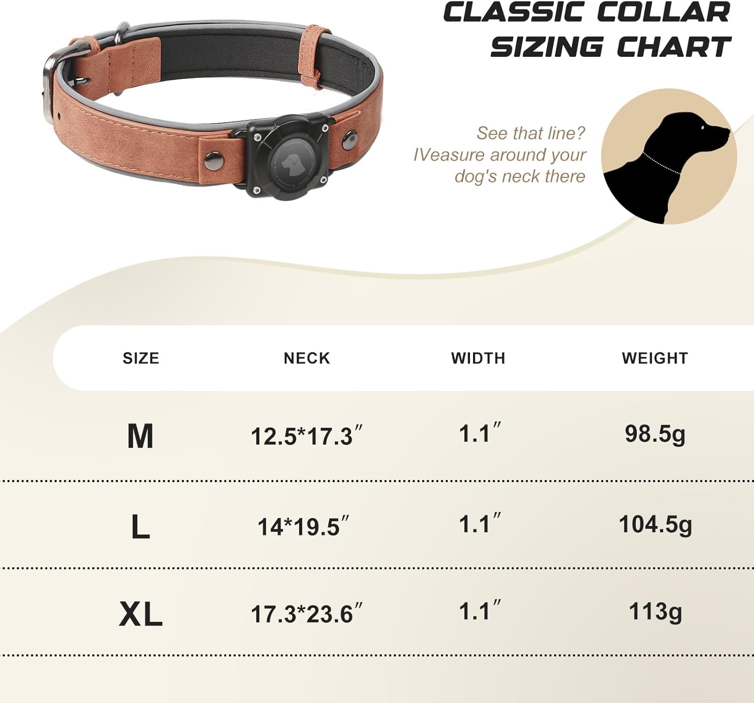 About this item Durable and Long-Lasting: Crafted from premium leather materials, this AirTag collar is built to withstand daily wear and tear. The sturdy construction ensures it remains in excellent condition, even with active pets. Built-in Airtag Holder: Keep track of your furry friend with the integrated dog collar AirTag holder. This convenient feature allows you to monitor your pet's location, giving you peace of mind wherever you go. (Apple Air tag not included) IP68 Waterproof: Whether it's rain or playtime by the water, this AirTag dog collar is designed to handle it all. The IP68 waterproof rating guarantees durability and functionality in wet conditions, making it perfect for all weather. Soft and Comfortable with Padded Interior: This Air Tag dog collar comes with a soft padded interior, offers maximum comfort for your pet. The cushioned design prevents chafing and ensures a snug fit. Enhanced Safety with Reflective Design: Our Air Tag collar features a highly reflective strip that ensures your pet is visible in low-light conditions, providing added safety during evening walks or outdoor adventures. › See more product details