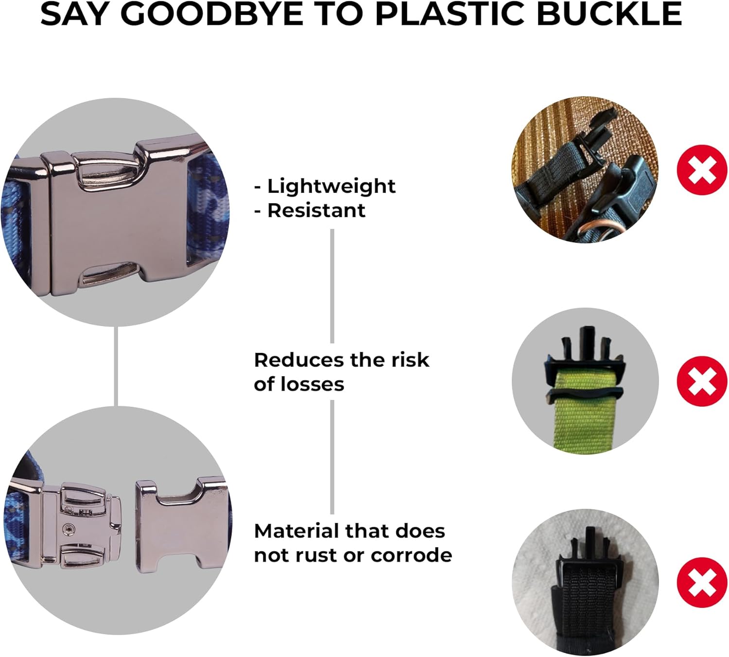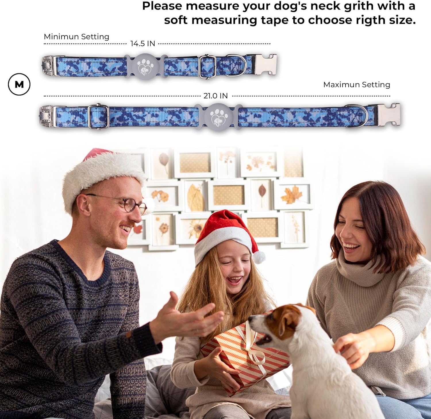 Apple Airtag Compatibility: Integration with Apple AirTag allows you to track your dog with ease and accuracy, giving you peace of mind and the ability to keep constant tabs on your pet's location. Which is especially useful in case the dog gets lost.Secure Metal Buckle: Unlike many other collars with plastic clasps, we have reinforced the security of our collar with a sturdy metal clasp. This feature gives you confidence when walking your pet, knowing that it is built for durability ensuring a long-term investment, saving you the cost and worry of frequently replacing collars.Soft and Reflective: It has two highly reflective lines, significantly improving your pet's visibility during night walks, which helps avoid accidents. Additionally, the padded design ensures that your dog's neck is well protected during various activities.Heavy-Duty Material: Its construction with nylon allows our collar to withstand daily wear and tear and resist the most energetic dogs. It is the perfect choice for medium and large dogs as it is not only reliable but also highly durable. This collar also has a metal buckle that gives you the option of attaching a leash for safe walks.Water Resistant and Ready for Any Weather: It has a silicone cover for secure insertion of the AirTag, protecting it from water, drops and impacts. This waterproof design allows your dog to swim and withstand the rain, ensuring comfort and durability in all weather conditions.NOTE:-Does not include Airtag device.-Take into account the size of your pet's neck.FEATURESColor: Blue, PinkSize:M (length14,5-21) width 1,0 INMaterial: Nylon