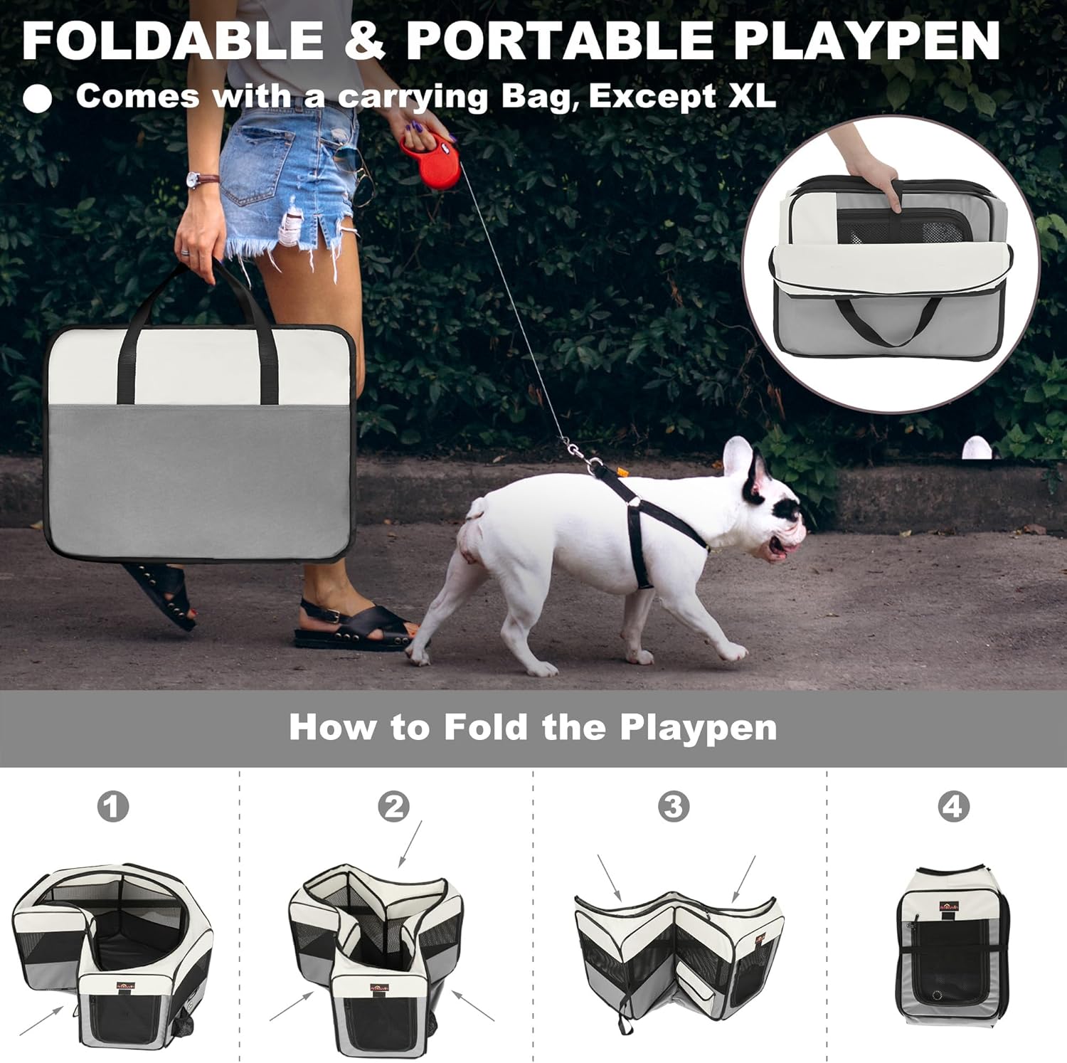 About this item 『DESIGN FOR PET』- The dog playpen keep comfort and security, make a enclosed space to play and lounge for your pet. Pet play pen designed with breathable all-around light mesh window and removable half mesh top deliver good airflow, also relive anxious for pets. 『EXCELLENT DESIGN』- Roomy 8 Panel collapsible design puppy playpen with protected seams and reinforced corners allows for extremely easy set up and take down. Removable zipper top half mesh half shaded design and zipper door with velcro provides easy in/ out access for your pet. Side pockets also make convenience for personal little items etc. 『PORTABLE & LIGHTWEIGHT』- The small animal playpen can quickly open to use from folded storage bag and fold back flat when not in use in seconds, no assembly required. Portable and lightweight design makes the pet cage suitable use for outdoors, indoors, traveling, camping, etc. 『CLEANABLE MATERIAL』- High quality dog pen made from durable Premium 600D Oxford Cloth which makes no terrible smell, waterproof and scratch resistant. The puppy play pens are easy to clean, as well washable material playpen to ensure that your pets will be sleep and play in a clean environment. 『AVAILABLE IN 4 SIZE』- Small (29x29x16 in), Medium (36x36x23 in),Large (45x45x24 in),X-Large (59x59x30 in).please allow a deviation of 1-2 inches. Proper size playpen provides a spacious interior for puppys to play and rest, so Please Measure Your Pets to make sure get right Pet Playpen. 4 sizes suitable for small animals such as dog, puppy, cat, kitten, rabbit, chicken, ferret, bearded dragon, guinea pig and hamster. › See more product details