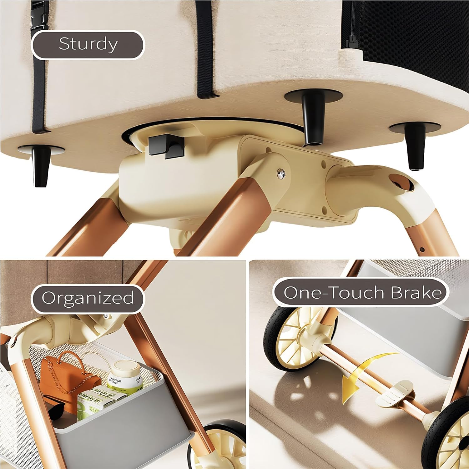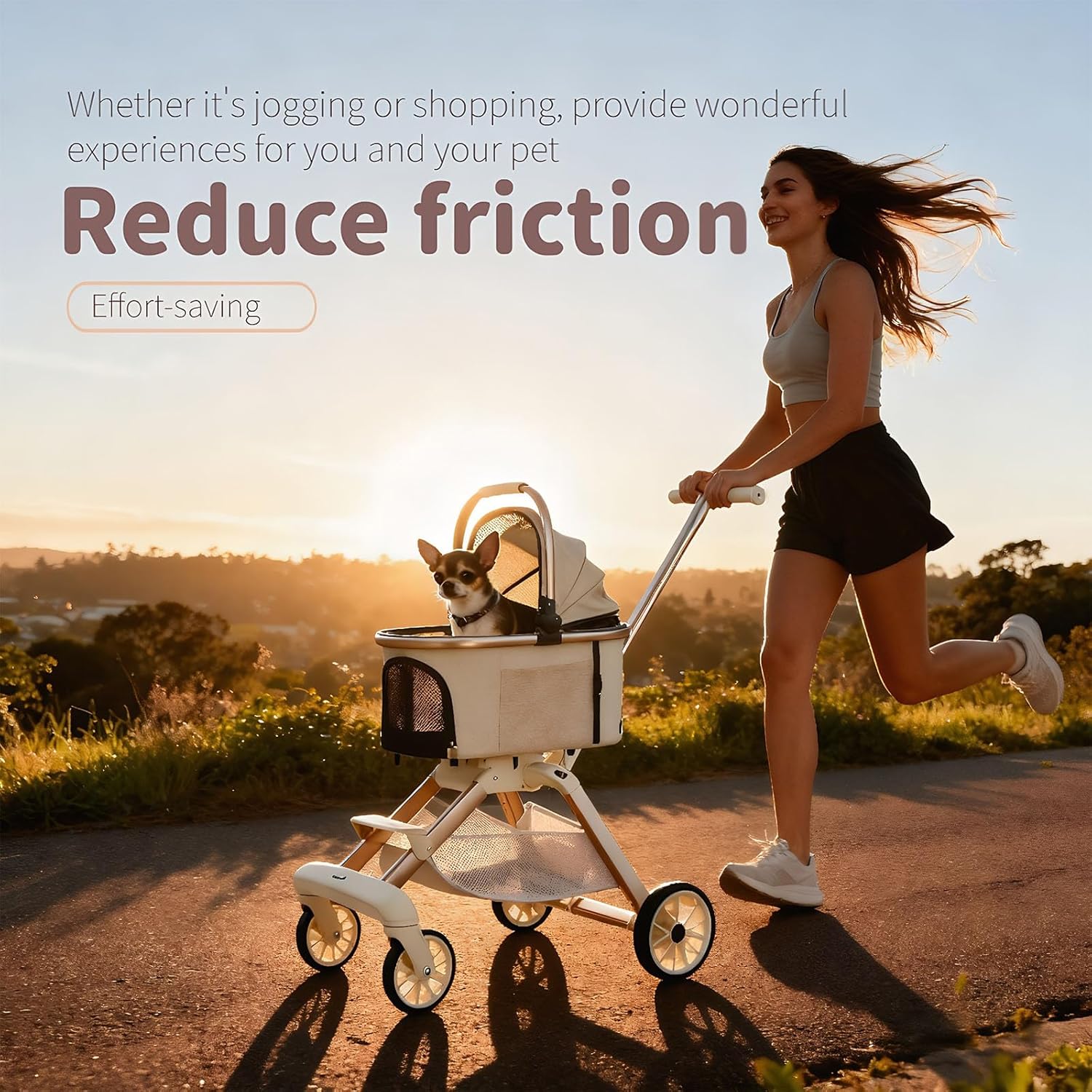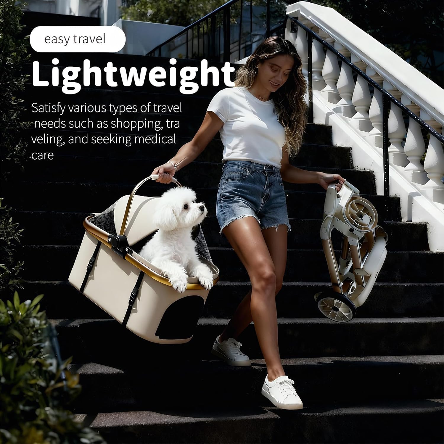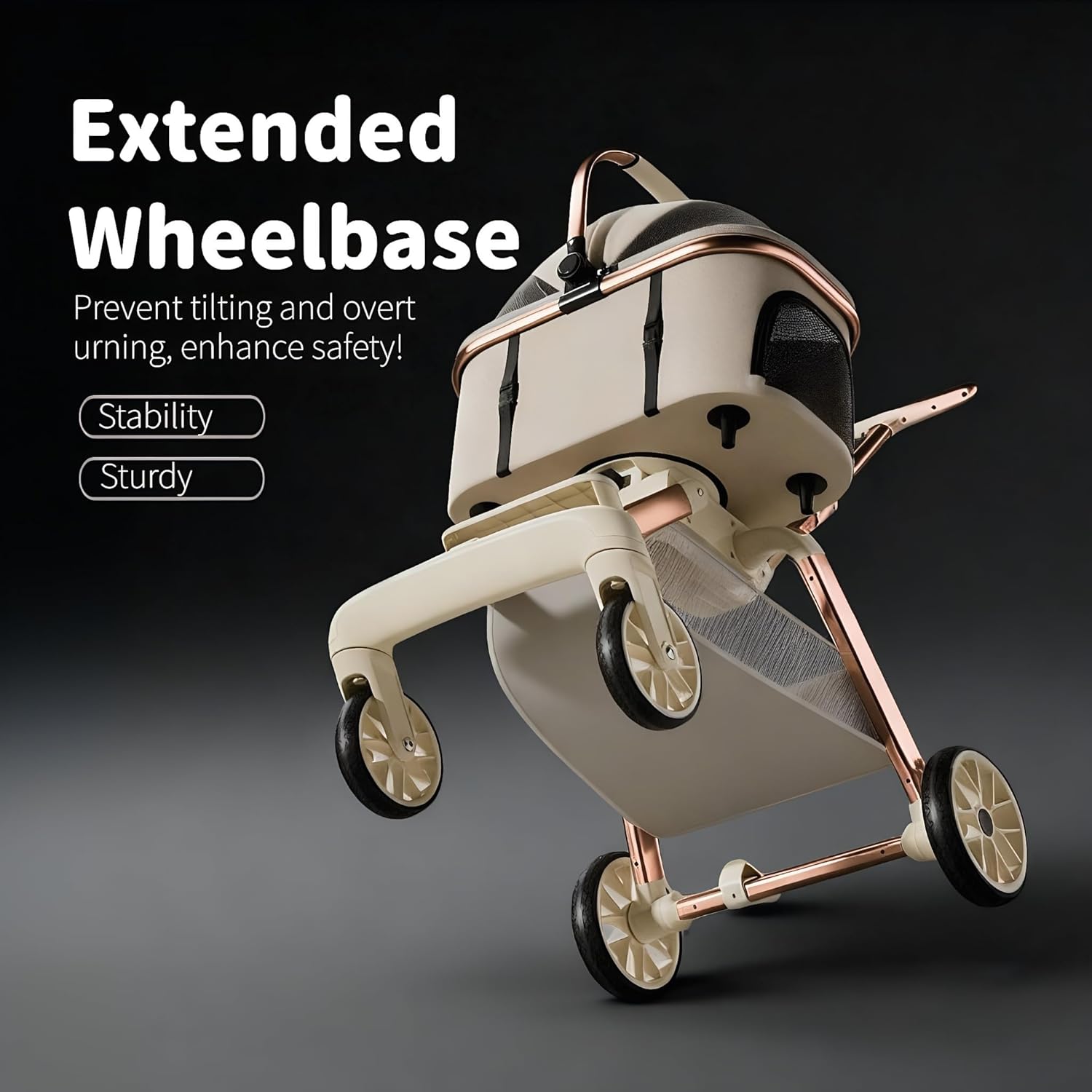 About this item 【Ideal for Small & Medium Dogs & Cats with Anti-Tip Stability】 This pet stroller is a professional-grade dog stroller for small dogs and stroller for cats. The widened wheelbase combined with large, shock-absorbing wheels delivers maximum stability, effectively preventing tipping on rough terrain and ensuring a smooth, secure ride for your small dog or feline friend. 【Lightweight Aluminum Frame & Effortless Steering】 This puppy stroller features a robust aviation aluminum alloy frame that ensures durability while minimizing weight. Paired with smooth-rolling swivel wheels, this lightweight dog stroller allows for easy one-handed pushing and precise maneuvering in any environment. 【One-Second Fold & Versatile Detachable Pet Carrier】 Features a one-touch quick fold for effortless storage. The main compartment is a detachable pet carrier, instantly converting into a standalone cat carrier or dog carrier. This versatile design seamlessly transitions from a stroller to a portable pet bed for multi-scenario use. 【Large Swivel & Silent Wheels for All-Terrain Smoothness】 Equipped with large swivel front wheels and a silent shock-absorption system, this stroller glides over various surfaces. Whether in stroller or pet carrier mode, it ensures a stable and quiet journey for your companion. 【Secure Parking Brake & Ample Storage for Total Convenience】 Features a reliable one-step rear parking brake for secure stops on any incline. The extra-large detachable storage basket holds all essentials. Combined with its function as a dog carrier or cat carrier, this stroller is your all-in-one travel solution. › See more product details