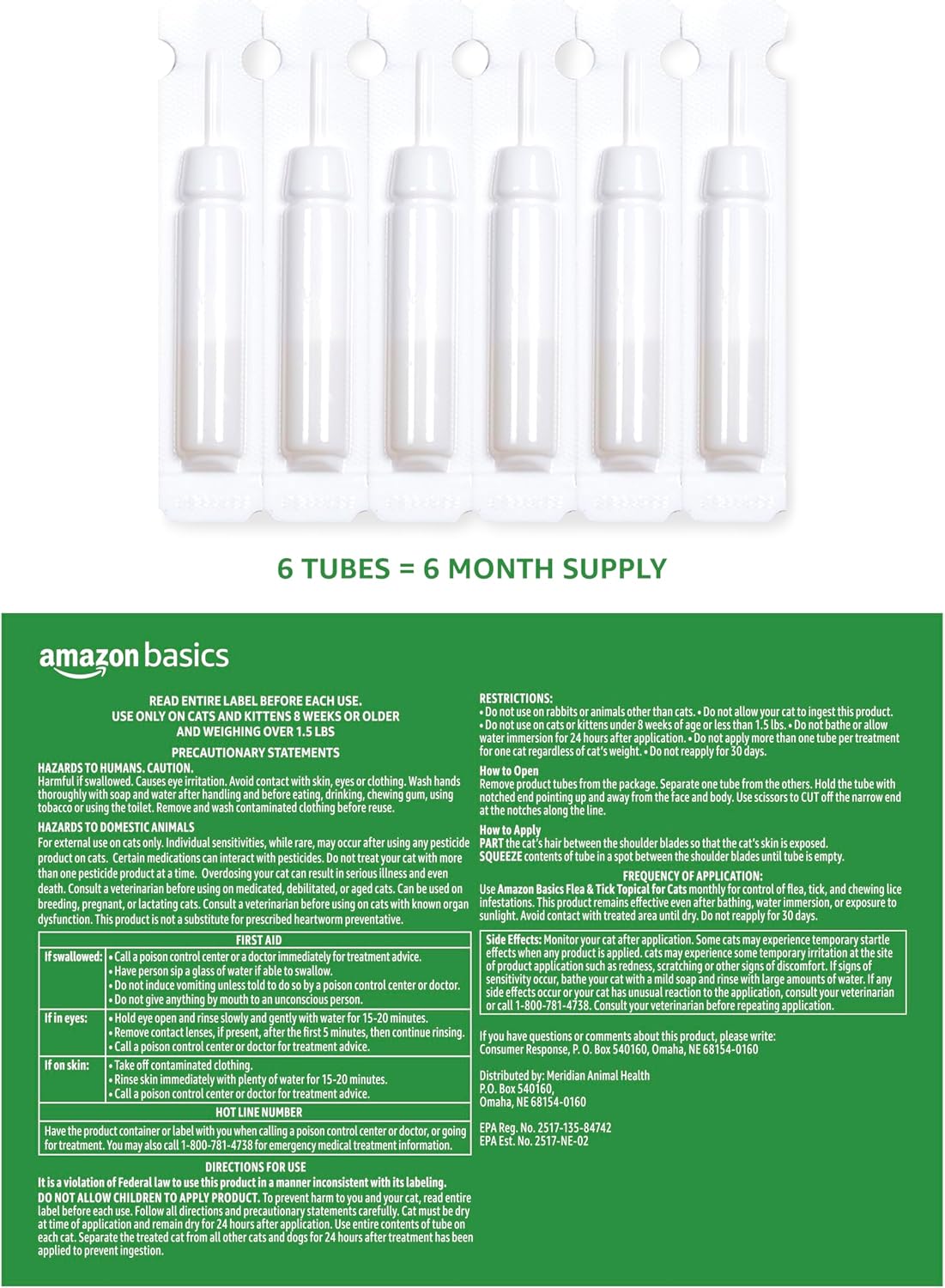 - Directions: It is a violation of Federal law to use this product in a manner inconsistent with its labeling. DO NOT ALLOW CHILDREN TO APPLY PRODUCT. To prevent harm to you and your cat, read entire label before each use. Follow all directions and precautionary statements carefully. Cat must be dry at time of application and remain dry for 24 hours after application. Use entire contents of tube on each cat. Separate the treated cat from all other cats and dogs for 24 hours after treatment has been applied.