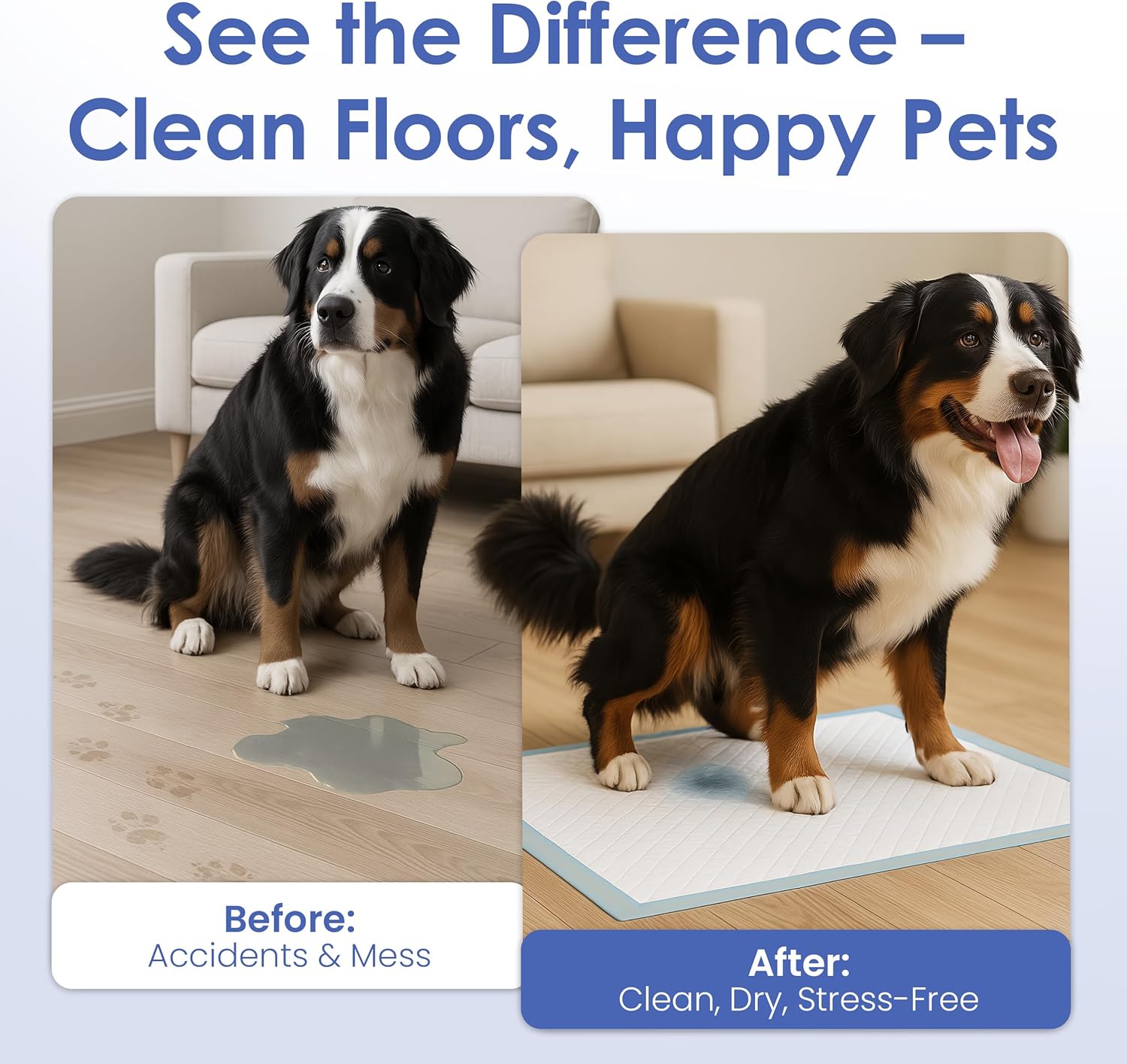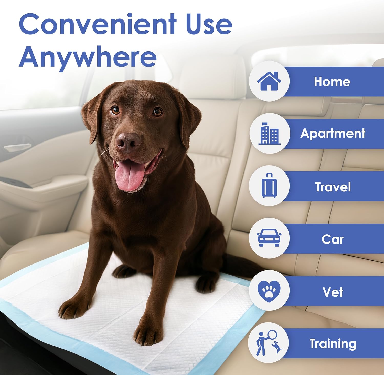 Training Pads are ideal for puppies and dogs that stay indoors for long periods of time. What you should do; Unfold the training pad and place it in a confined area. (Blue plastic side down). It is important to place your puppy or dog on the training pad several times a day in order to get him used it. on the average, a puppy must relieve himself every few hours, based on his age (a 2 month old puppy every 2 hours, a 3 month old every hours etc). If your pet relieves himself somewhere other than the designated spot where the pad is placed, bring him back to the correct spot immediately. Keep in mind that your pet will have to relive himself shortly after a meal and will need to eliminate more frequently during the summer when his water intake is higher. The minute your dog begins to relieve himself on the pad, be sure to use cures like “go potty”. You should use this cue every time that your dog relives himself on the pad so that he associates the phrase with the action of elimination. Every time that your pet used the pad successfully, make sure that you give him a treat and lots of praise. Treating helps your dog to understand that he is doing what you want him to do. Always remember to dispose of soiled pads and replace them as needed. When your pet begins to relieve himself on the pads, on consistent basic, it is time to begin moving the pad closer to the door. Keep moving the pads closer to the door until they are actually outside. At this time, the training process will be complete.