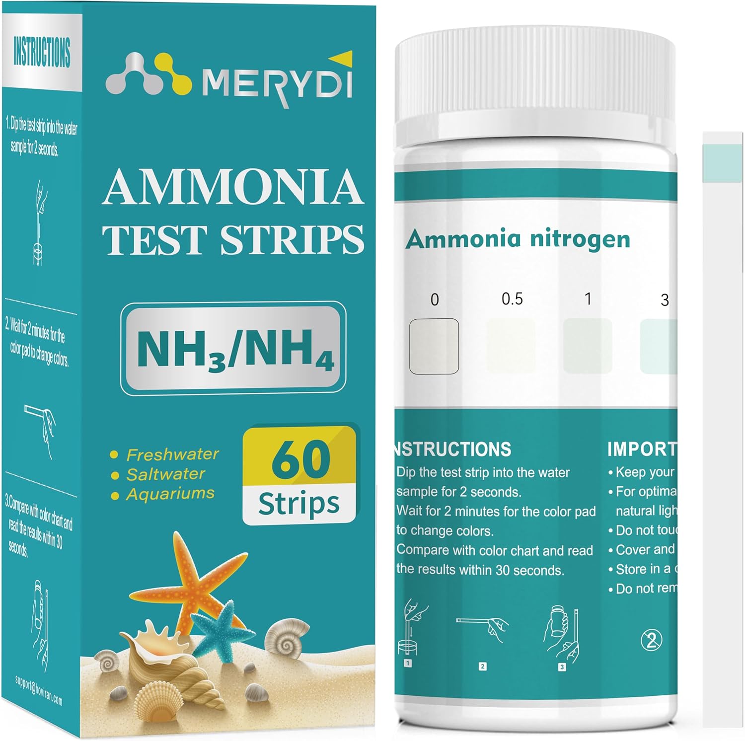 Ammonia Test Strips for Fish Tank:Get accurate ammonia level readings in water, aquariums, or ponds within 2 minutes. 60 Ammonia Test Strips: This aquarium test kit contains 60 counts ammonia test strips. Ideal for monitoring water quality in freshwater and marine aquariums Easy & Accurate Aquarium Test Kit: Just dip into water sample for 2 seconds; Wait for 2 minutes; Compare the results to the color chart located on the bottle Fish Tank Test Kit Freshwater: Suitable for use in various aquarium sizes and types,such as freshwater & saltwater aquariums/pond/fish tank, perfect for monitoring aquarium water quality Water Testing Kit Aquarium: To keep optimal conditions for fish, testing your aquariums ammonia regularly is necessary › See more product details