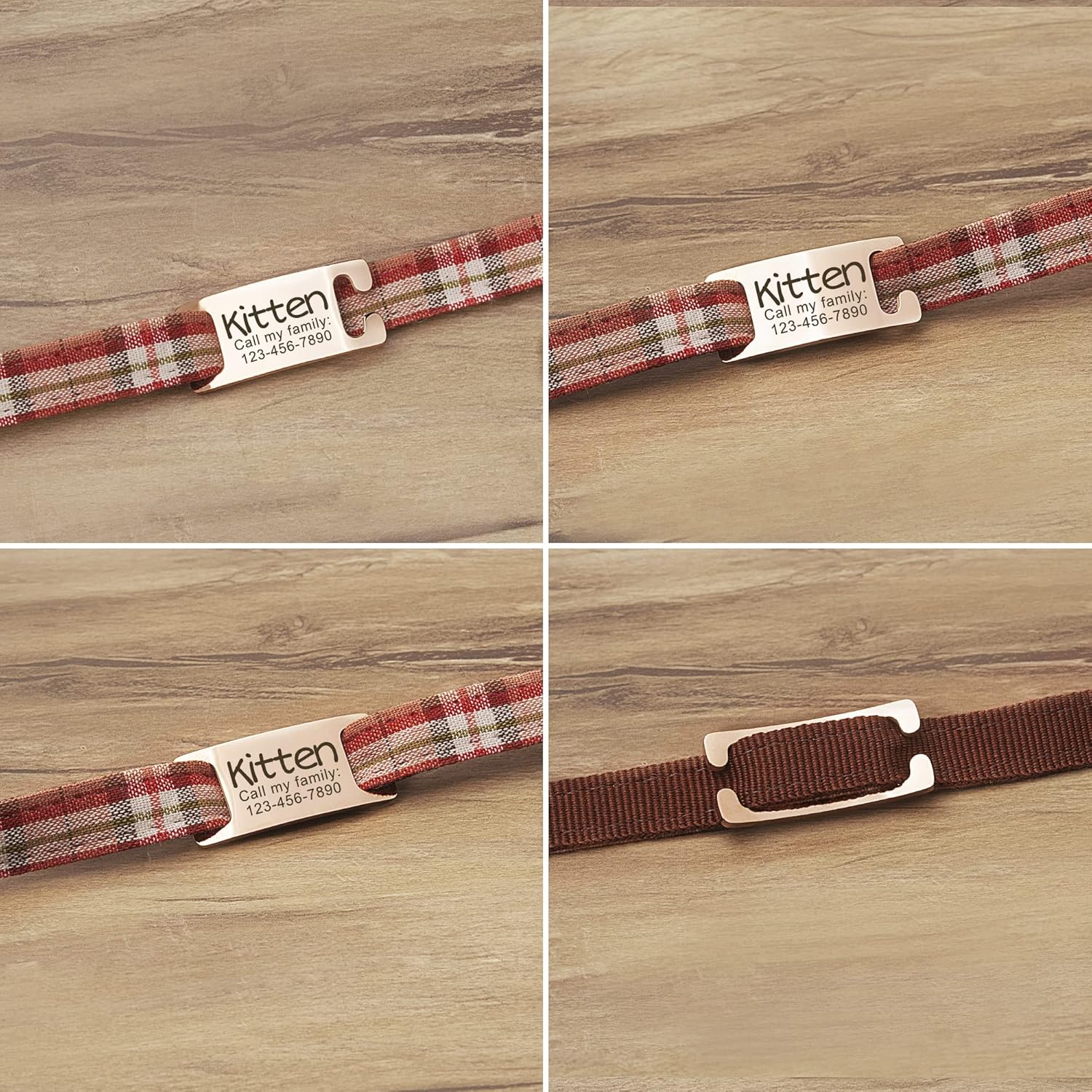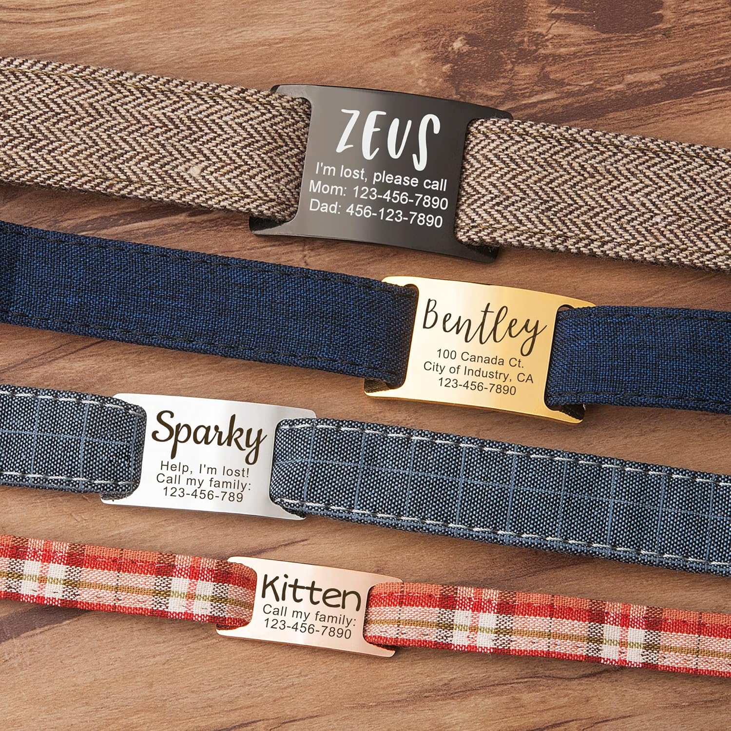 About this item Fun Design Pet ID Tags - Personalized laser engraved pet tags with your pet's name and contact information. A fashion color plated name tag for your beloved dog, cat, or other small animals. Handmade with love. Size Info - Small: fits 3/8" inches wide collars. Medium: fits 5/8" inches wide collars. Large: fits 3/4" inches wide collars. X-Large: fits 1" inch wide collars. Handmade and personalized with engraving on the charm piece. Material Details - Made of environmentally friendly stainless steel which is better quality than brass, aluminum, or alloy materials. Slide-on design keeps the tag safe and quiet for your pet. No fade, no tarnish, no allergies. Perfect Gift for Family and Friends - A special thoughtful personalized gift for women, men, dog mom, pet owner, best friend, etc. A meaningful gift for family and friends on many occasions and holidays. 100% Satisfaction ❤ - Each personalized order is unique and different, so there might be some details that are not as expected in each design. Please feel free to contact us with any questions or concerns. We will be happy to make adjustments for you. › See more product details