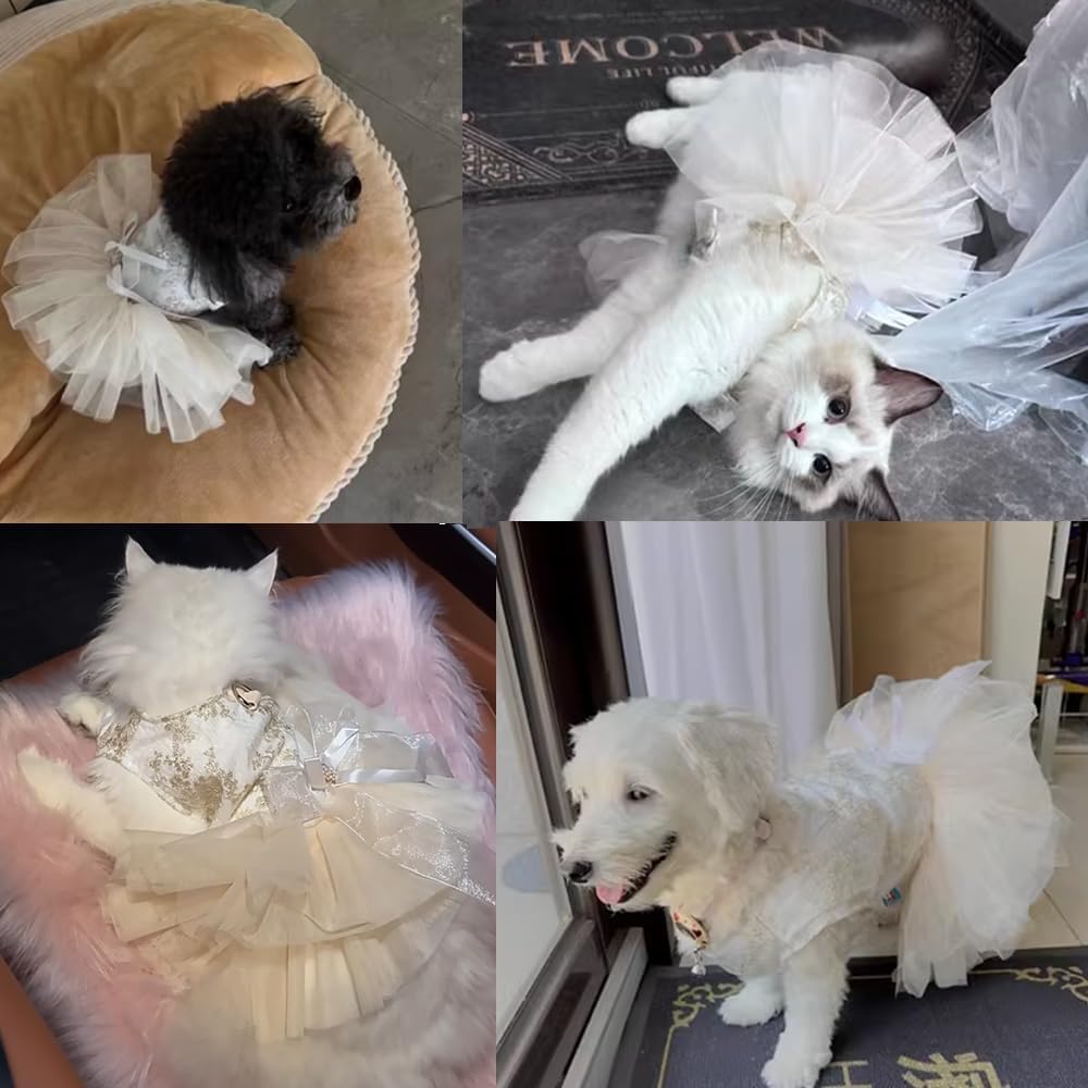 About this item - About size: This dress for small dog and cats, pls refer to size chart for the detail on image 2 and feel free to contact us if any problem about the dog princess dress, we will reply to you within 24 hours - Our dog wedding dress is made of soft cotton and polyester, skin-friendly and comfortable to wear, furthered add ribbon bow knot and pearl decor on the pet dress - The dog wedding attire is a princess style with exquisite design, sophisticated Embroidery pattern is eye-catching and matching the fluffy tulle skirt, your lovely fur baby will be more charming and elegant. - There is a D-ring on the dog harness dress for attaching leash, it is convenient to control your pet activities and keep them safe when walk your dog at outside - Puppy dress with snap button closure which make the cat dress for cat easy on easy off .package include 1*small dog dress for wedding birthday Holiday party daily wear Christmas. › See more product details