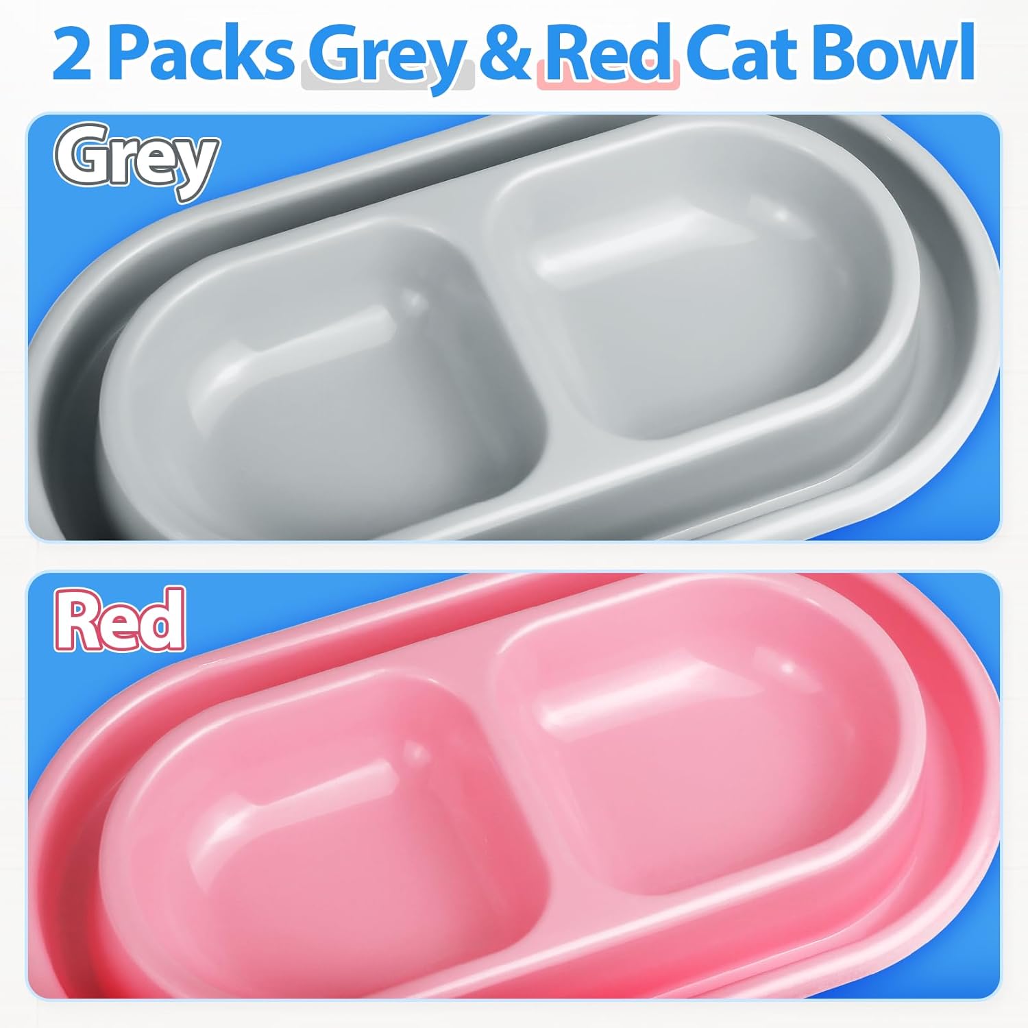 About this item Water Moat Ant Away: Protects food from ants with a built-in water barrier moat (just fill with water to block ants). 2 Packs Cat Food Bowls: Grey and Red Color out door cat bowls. Small Double Bowl Design: Separate compartments for food and water, perfect for outdoor feeding. Spill-Proof & Stable: Low center of gravity and non-slip base prevents tipping (even for energetic cats!). Easy to Clean: Made from food-safe plastic, hassle-free cleaning. Ideal for Outdoor Use: Lightweight, portable, and weather-resistant for patios, gardens, or travel. Portable, spill-proof design are great for RV/Travel Pet Owners. › See more product details