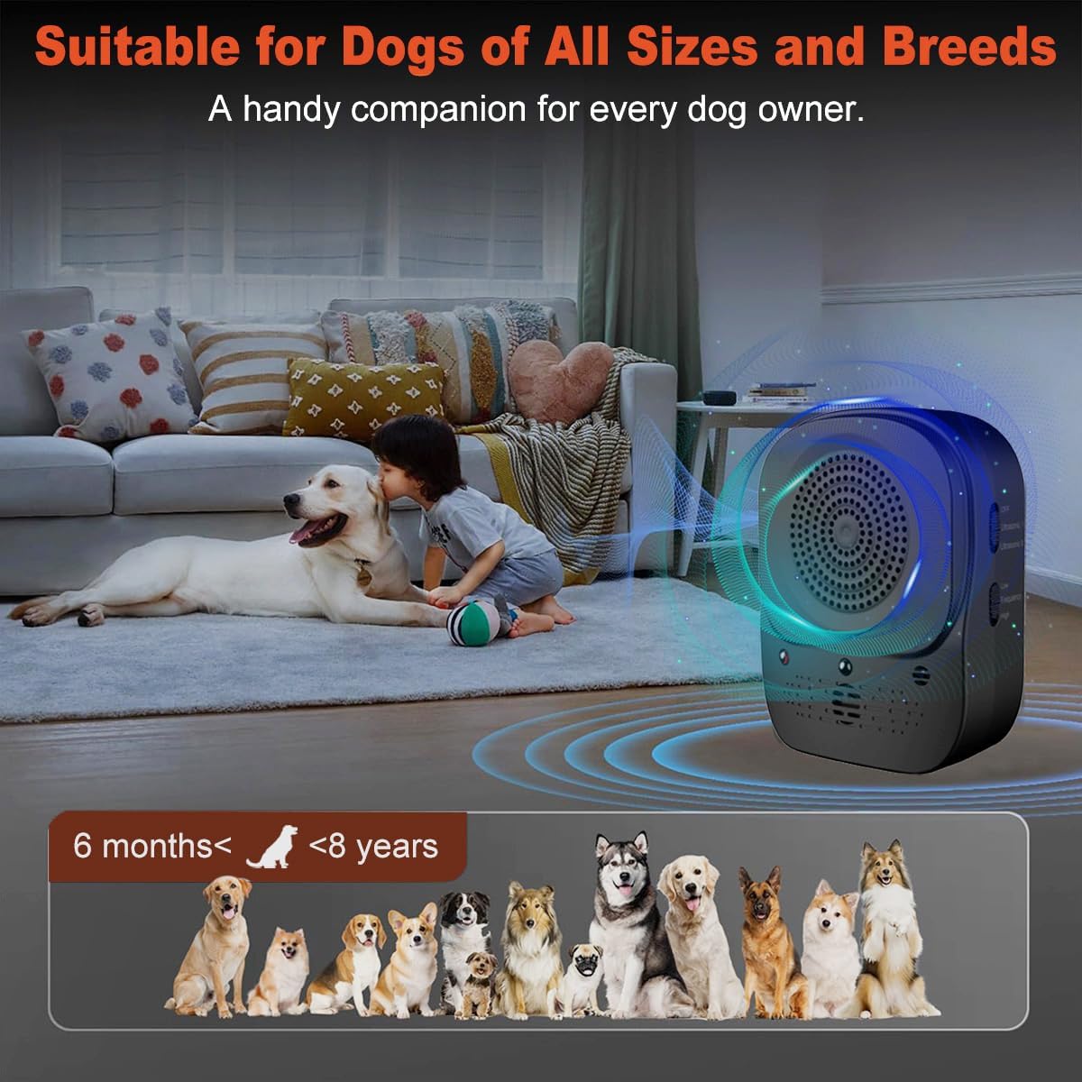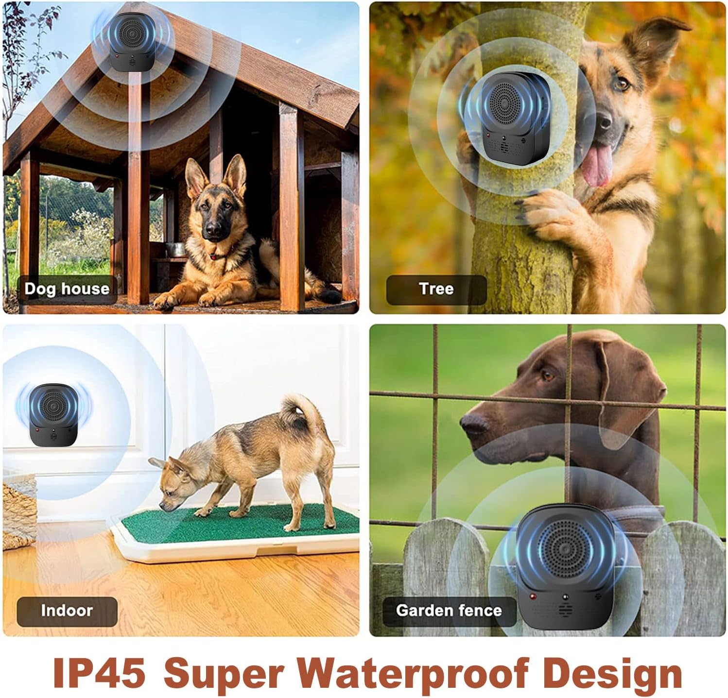 Smart Bark Detection - Automatically detects barking up to 33 feet away, delivering a distraction sound to curb unwanted noise. Training takes just a couple of weeks—transform your environment into a calmer, quieter space Remote-Controlled Barking Solution - Take control with our upgraded anti-barking device! Manually activate it with the remote for targeted barking control, and enjoy peaceful moments at home. Simply press the button, and silence is just seconds away 4 Ultrasonic Frequencies - Personalize your barking deterrent with 4 adjustable ultrasonic levels, ensuring the perfect frequency for your dog's needs. Suitable for most breeds - just be patient if they’re new to the sound Durable & Waterproof Design - Enjoy up to 30 days of use on a single charge, thanks to the powerful 2000mAh rechargeable battery. IP45 waterproofing ensures reliability, rain or shine - ideal for both indoor and outdoor use Safe for Humans and Dogs - The ultrasonic sound is inaudible to humans but highly effective for dogs, helping to stop barking without disrupting your day. Ideal for keeping your own dog or your neighbor’s dog from barking › See more product details