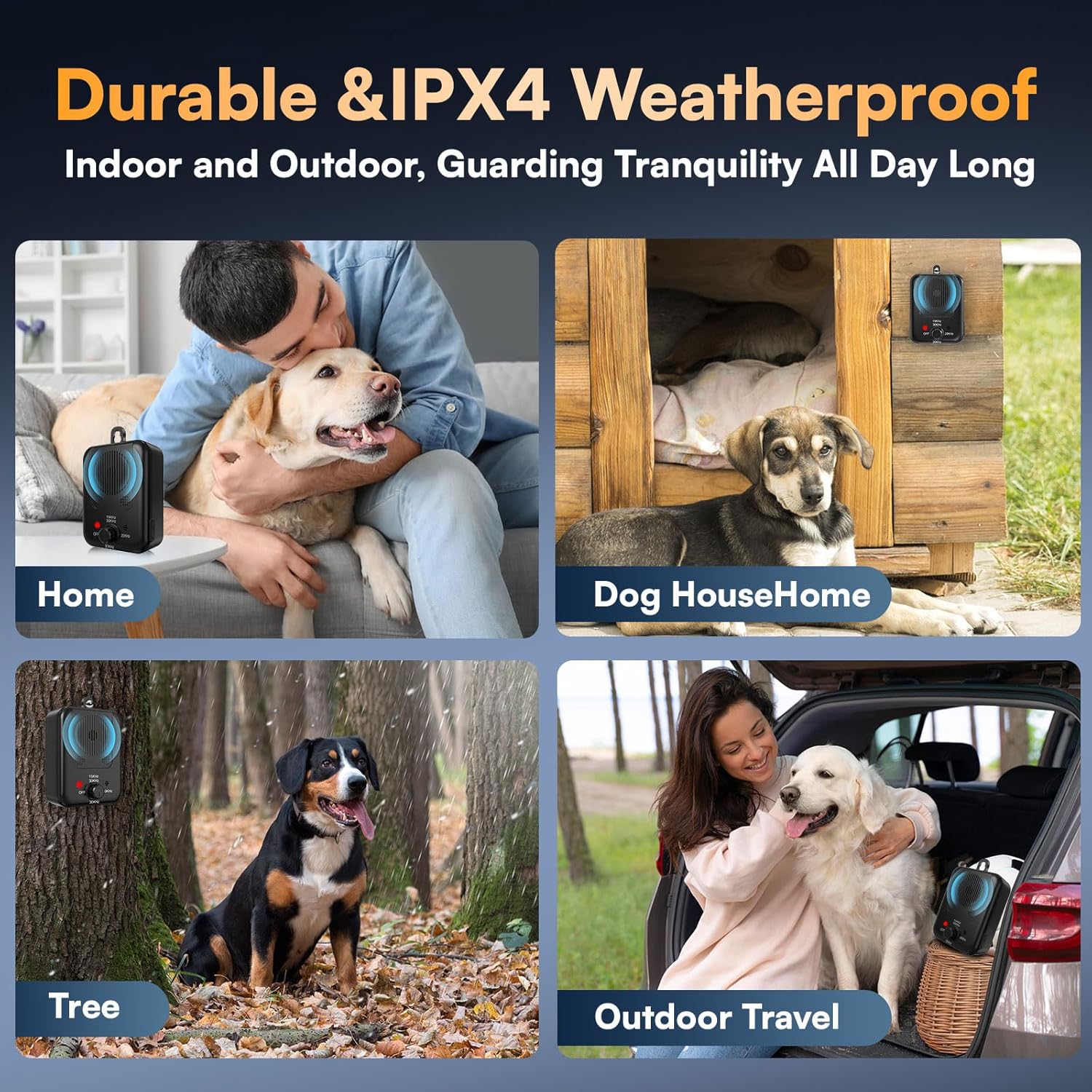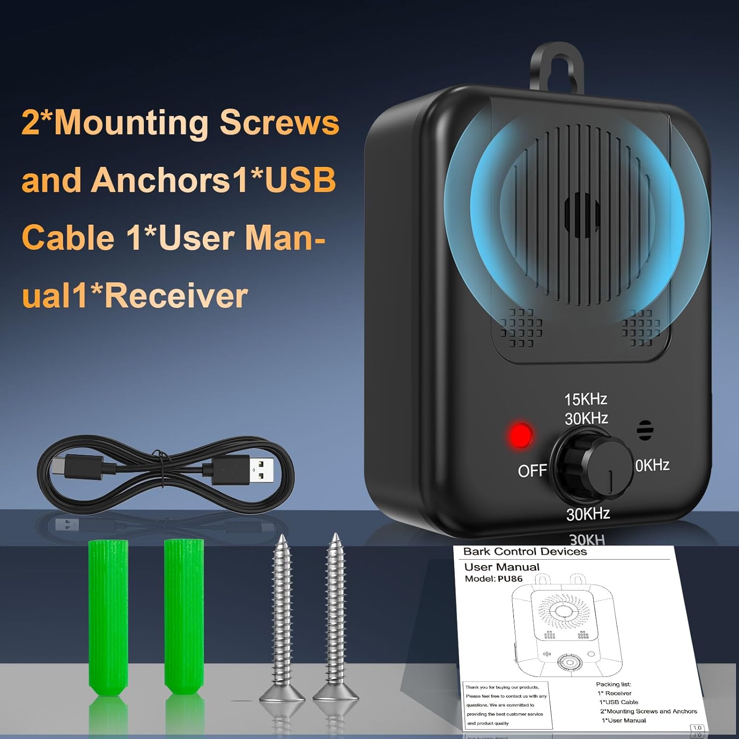 đŸăRECHARGEABLE & EASY TO USEă: Our sonic anti-bark device can be easily hung on a tree, garden fence, table, or dog house, very convenient to use on your or your neighbor's barking dog. The anti-bark device has a built-in 1500 mAh rechargeable battery, which can be charged for 5 hours and can be used for 30 days, simple to operate and easy to use, it's a friendly dog barking device for your furry friend (please charge the device before use). đĄăDURABLE & WATERPROOF DOG SILENCERă: This anti dog barking device has an IPX4 waterproof casing to withstand all kinds of bad weather, so you don't have to use the dog barking control devices because of the weather, no matter in sunny, rainy, or snowy days, our bark stopper can stand up to the test, and you can rest assured that the dog deterrent devices is safe to use outdoors. đăSAFE & EFFECTIVE BARKING BOXă: Our ultrasonic dog barking control device uses advanced ultrasonic technology to stop excessive barking without harming your beloved pet. The gentle yet effective ultrasound serves as a communication tool to teach your dog when it's time to stay calm. Designed with your pet's health in mind, our no bark device is carefully crafted to be safe and harmless to dogs. The humanized design ensures that your dog learns to control excessive barking without any harm. đăAUTOMATIC ANTI-BARKING DEVICESă: Tired of constant noise? Automatic anti-bark devices are your answer. Our dog deterrent devices automatically senses and responds to excessive barking, helping you regain control of indoor noise levels. Ideal not only for indoor home use, but also for placement outside, there is no need for constant monitoring, our device automatically detects and responds to barking, providing a hassle-free solution to persistent barking problems. đă33FT & 3 ADJUSTABLE MODESă: Our ultrasonic bark stopper has three adjustable modes, you can choose the one that is suitable for your dog according to your dog's specific situation. Mode 1 (15khz~30khz): more suitable for large dogs or active dogs, mode 2 ( 20khz): suitable for docile dogs, mode 3 (30khz): suitable for small dogs. Our anti dog barking device can cover a range of 33 feet, ensuring effective coverage of a considerable area. âș See more product details