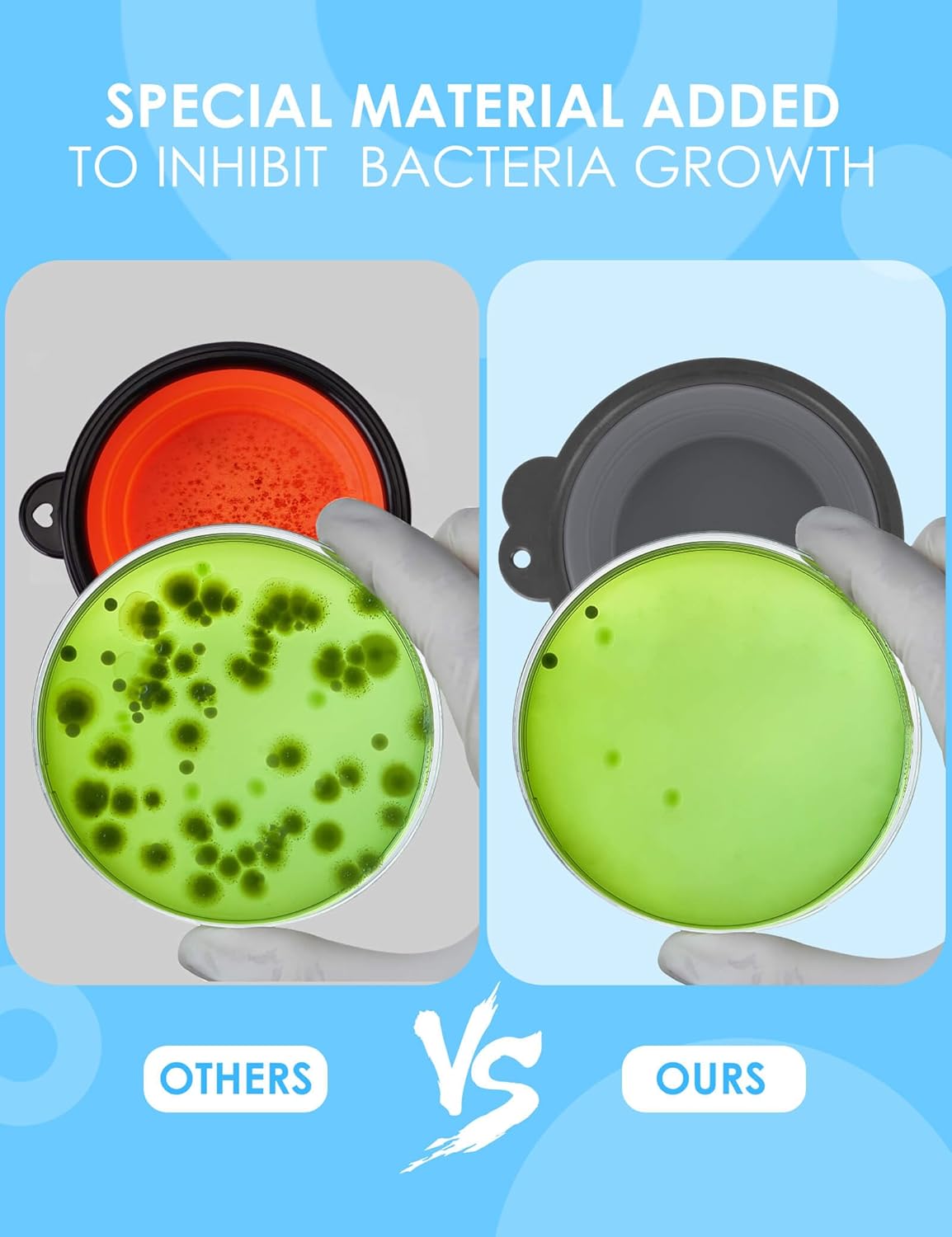 About this item 【Unique and Different】Aonkey dog bowl set is in a league of its own, addressing issues from feedback on other bowls. The upgraded carabiner boasts a larger, sturdier opening, reducing the risk of breakage. Plus, enjoy the added convenience of bottle carriers, compatible with most cola-shaped water bottles in the market. 【Revolutionary Structure】Say goodbye to the hassle of assembled plastic rings. Aonkey's foldable dog bowl boasts an upgraded structure, integrating soft silicone with a hard rim. No more worries about the ring coming off or cracking, and the clip hole remains intact. 【Unmatched Stability】Thanks to the integrated hard rim, our dog bowl stays sturdy when unfolded. No more spills or losing structure. Carry it confidently with one hand, even when it's full of water. 【Perfect for On-the-Go】These travel bowls are a breeze to pack since they collapse effortlessly. Clip them to a backpack or water bottle – ideal for outgoing to the park, hiking, driving, or any social activities with your furry friend. 【Safety First】Crafted from high-quality, food-grade silicone with a tempting beef flavor, our dog foldable bowl eliminates the typical silicone smell that dogs dislike. BPA-free, dishwasher safe, it's not just convenient but also healthy for your pet. › See more product details