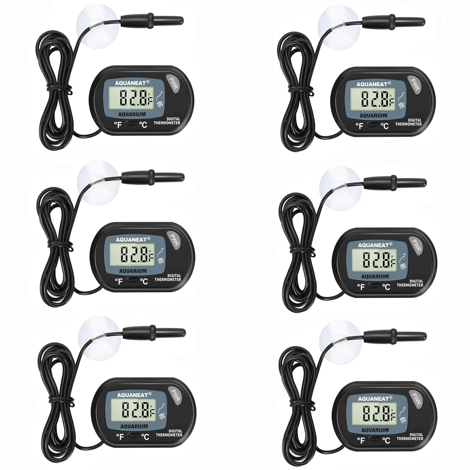 About this item Wide application: Ideal for use in water or high moisture environment like aquarium terrarium, or vivarium; suitable for different water types such as fresh water, tap water, salty water, marine water and etc. Easy to read: Comes with a large LCD display that is easy to read clearly. Thermometer size: 2.3" (L) x 1.5" (W) Easy to setup: Submerge probe with suction cup can easily be set in water (Submerge probe only, do not submerge thermometer in water) ; Press ''PWR'' for 3 seconds to power off Free Battery: 1 PC LR44 button cell battery for each thermometer. Wide temperature range: Measure -58°F to +158°F (-50°C to +70°C) with accuracy +/- 1°C › See more product details