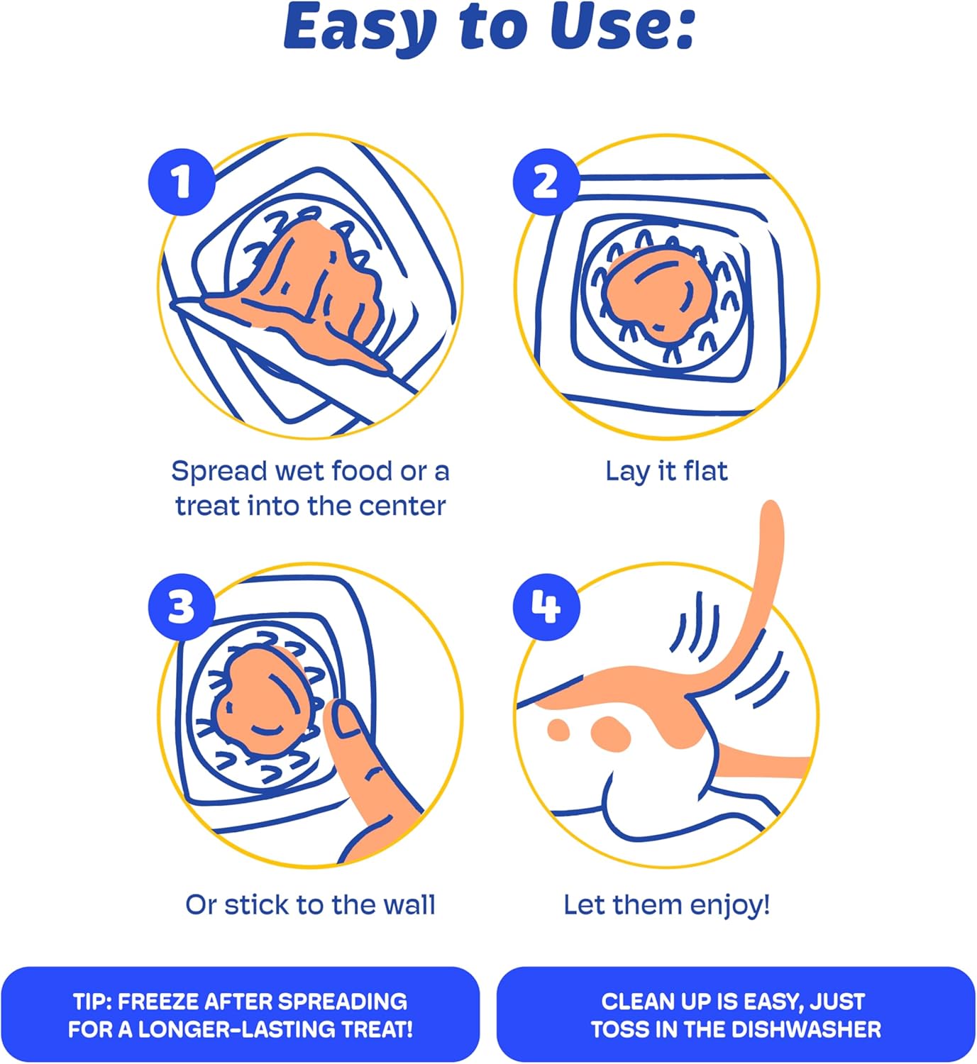About this item Stress-Free Bath Time: Keep your pup calm during grooming or bath time with the Lick Mat. Suction cups stick firmly to any surface, turning anxiety into relaxation with tasty peanut butter treats. Strong Suction & Portable: Designed for convenience, this dog licking mat with suction cups sticks securely to tubs, tiles, or glass, making it perfect for home use or travel grooming sessions. Perfect for All Sizes: Whether you have a large breed or a small pup, this slow feeder dog mat satisfies big appetites and prevents gulping—ideal for peanut butter, yogurt, or spreadable dog treats. Boosts Focus & Fun: This lick mat for dogs keeps pets entertained while promoting mental stimulation. Great for training, crate time, or calming nervous dogs during vet visits and bath time. Thoughtful Gift for Dog Lovers: The dog lick mat is a must-have pet supply for any dog parent. Durable, easy to clean, and endlessly fun—perfect for birthdays, holidays, or new pet owners. › See more product details