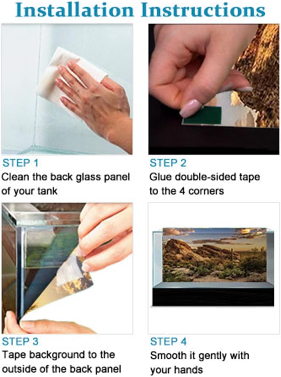 Specifications: Condition: Brand New. Size: 36x18in/90x45cm. Customized per your request. Material: polyester, reused, sturdy and durable. Color: As picture shown, it is clear, realistic, stereo sense is strong. Install: 1. Clean the glass panel outside the tank. 2. Glue the double-sided adhesive tape to the four corners of the background fabric. 3. attaching the background fabric to the glass plate 11. Gently smooth.