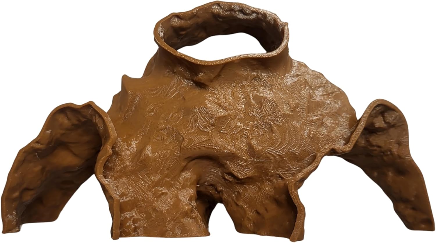 This 3D printed hide could be a great addition to your aquarium or terrarium. Its made of a durable PETG plastic that can withstand harsh UV exposure compared to other PLA based hides. Your pet will feel safe in this hide and is sure to love it, and maybe so will you. This hide is designed to sink in your aquarium and measuers 9"x5"2.5" This design is created by Aquireef3D and is produced locally in the U.S.