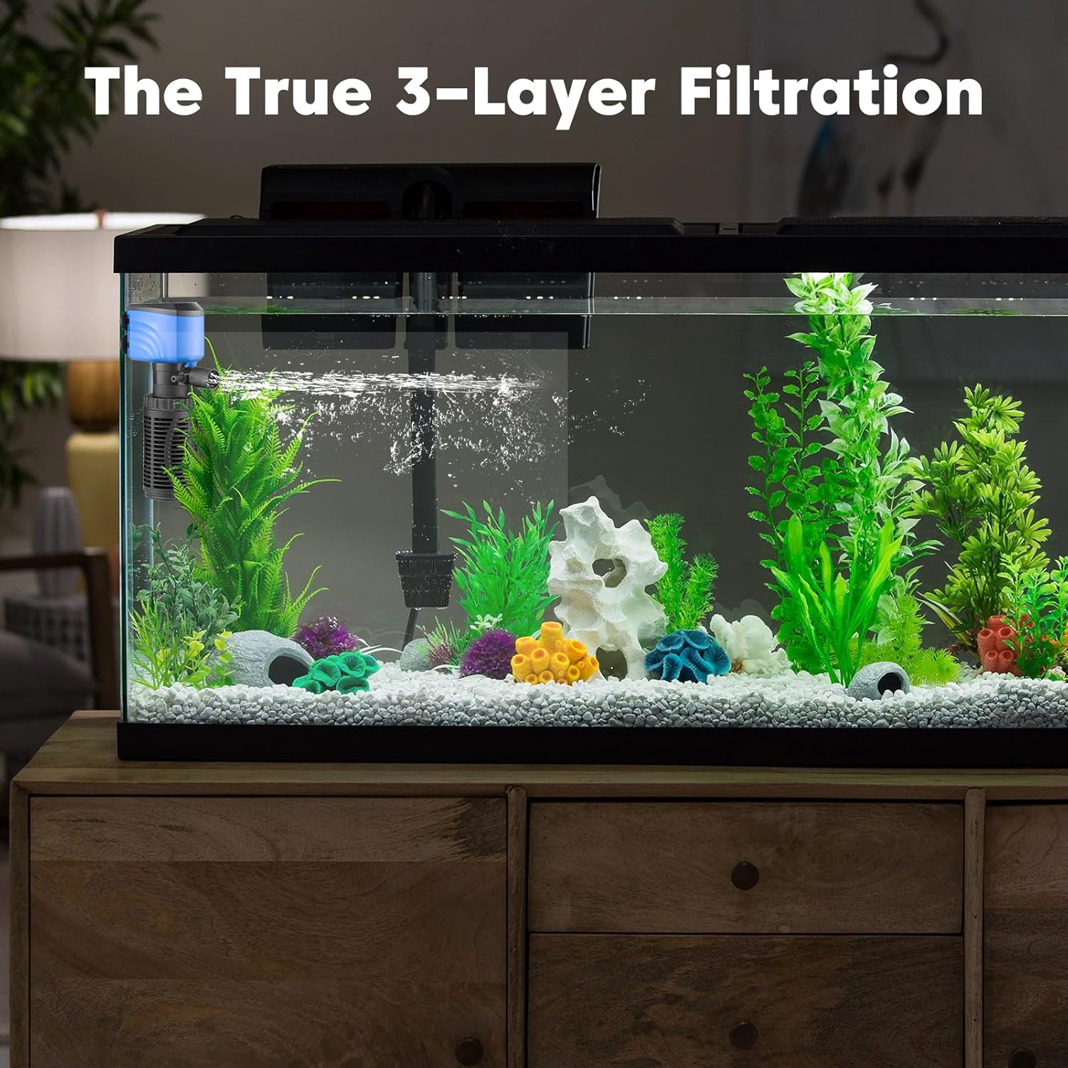 About this item 【Excellent Performance】 Our aquarium filter specifically designed for 15-75 gallon tanks, boasts a powerful output of up to 210GPH (795L/H) and a power of 6Watt. With its exceptional performance, it effectively maintains the water quality in your aquarium, keeping it clean and healthy for your fish › See more product details