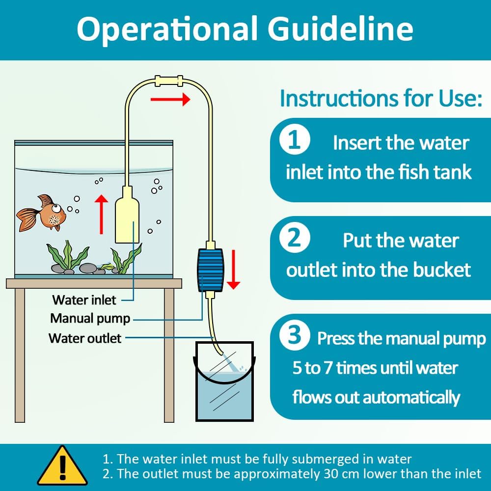 Novique, is committed to providing professional, high quality products for every aquarium hobbyist.Product Parameters:Item Weight:2.72 ouncesHose Length: 5.12 ftInlet Diameter: 1.61inchOutlet Diameter: 0.51inchFunction: Water changing, waste removal, and gravel cleaning Water Suction Speed: Approximately 6 L / minDesign Highlights: - Three-in-One High-Efficiency Siphon- All-round Safety Protection- Durable & Sturdy - Widely Compatible- Worry-free ChoiceCautions:1. The water inlet must be fully submerged in water2. The outlet must be approximately 30 cm lower than the inlet.Instructions for Use:1.Insert the water inlet into the fish tank2.Put the water outlet into the bucket 3.Press the manual pump 5 to 7 times until water flows out automaticallyWhat made me decide on the Novique Aquarium Gravel Cleaner?1. Three-in-One High-Efficiency Siphon: Integrates water changing, waste removal, and gravel cleaning functions. Just gently squeeze it a few times to start the high-efficiency siphon. It can discharge 30 liters of water in 5 minutes.2.All-round Safety Protection: Equipped with a built-in circular filter screen, forming a considerate protective barrier. During cleaning, it can effectively prevent small fish, shrimp and other invertebrates as well as sand, gravel and pebbles from being sucked in. 3.Durable & Sturdy: High-strength PE inlet, impact-resistant and wear-resistant. Thickened PC hose is highly resilient, with a thickness 1.5 times than Similar products, never break. Exclusive fixed ring that prevents hose disconnection, maintain consistent vacuum pressure, ensuring stable suction power and water flow speed.4.Widely Compatible: Outstanding value for money, suitable for all types of aquariums, freshwater fish tanks, and outdoor fountains. 5. We offer a 12-month warranty and 24-hour professional after-sales service. If you encounter any issues with the product, please contact us, and we will respond to your needs at any time.Novique, always innovating for a better life.Experience excellence with Novique./b>