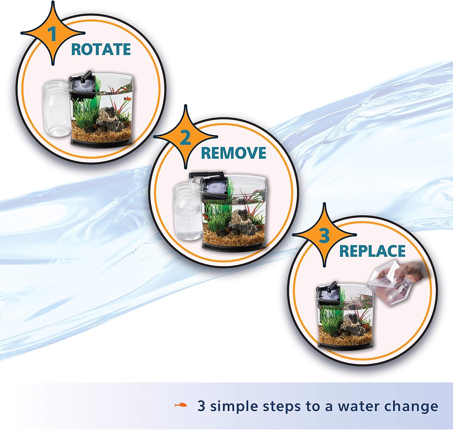 - Included Components: Aqueon LED MiniBow Small Aquarium Fish Tank Kit with SmartClean Technology, Black, 5 Gallon