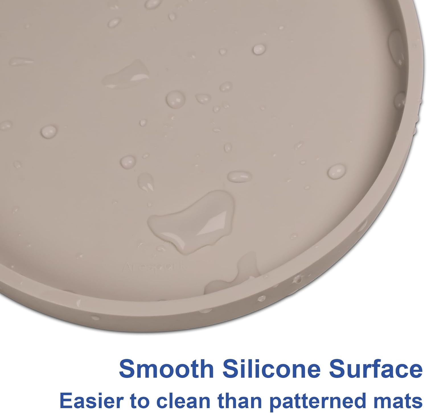 About this item Healthy Material: Arespark silicone pet food mat is made of high-quality food-grade silicone, which makes the cat or dog food mat waterproof, flexible, durable, and 100% PVC & BPA-free., so you can put cat or dog food directly on the mat. Our silicone is thickened and thicker than ordinary silicone food mat, making the pet feeding mat more durable. Raised Edge & Anti-slip Design: Extra high edge can keep all spilled food and water on the pet food mat, keeping your floor clean and avoid messy spills at mealtime. The bottom of the small silicone mat is anti-slip treated to prevent your cat or dog from moving the food bowl during eating. Easy to Clean: Cat food mats or water mats with textured surfaces are usually more likely to hide dirt and are difficult to clean, which is not good for the health of pets. Our cat bowl mat has no extra patterns or textures, just clean up easily by rinsing, and dishwasher safe, saving your time. Suitable for All Pets Food: Silicone pet food mats are suitable for all types of pet food, including dry food, wet food, pet canned, pet goat milk, water, etc. Our round pet food mats are suitable for all pets: cats, dogs, rabbits and other animals. Easy to Carry Size: Small, 6" x 6" x 0.59". There are 2 per pack. The dog feeding bowl mat can be folded at will, which is easy to carry. Whether indoors or outdoors, Arespark pet feeding mat is always ready to provide a clean feeding point, suitable for travel. This pet feeding mat is the perfect pet gift for pet owners! › See more product details