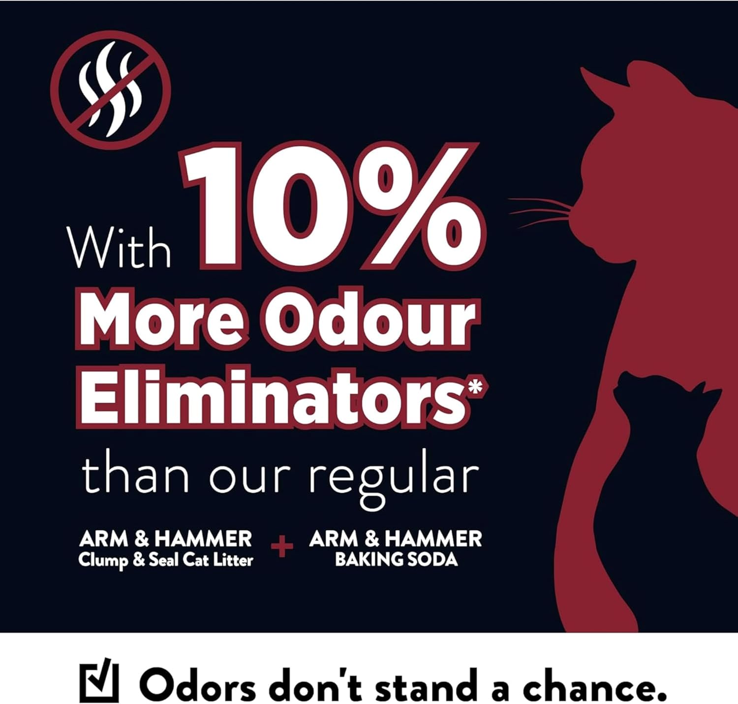 Keep your home fresh with ARM & HAMMER Clump & Seal Platinum Multi-Cat Clumping Cat Litter. Designed for multi-cat households, this premium litter guarantees 14 days of odor control. Featuring patented odor-sealing technology and 10% more odor eliminators than our standard formula, it locks in and destroys odors on contact. Moisture-activated micro-granules form rock-hard clumps for easy scooping. Infused with ARM & HAMMER Baking Soda, this litter is your go-to solution for powerful odor elimination and a cleaner litter box experience.