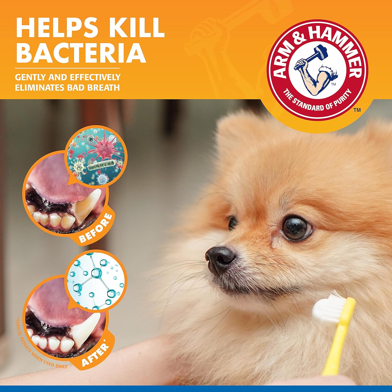Arm & Hammer Dental Water Additive for dogs helps fight tartar with a baking soda-enhanced formula. Dog dental rinse is a perfect solution for pets who don't have any patience for teeth brushing Simply mix into your dog's drinking water for fresh breath. This water additive for dogs is odorless and flavorless making it ideal for picky pups Your dog won't even know it's there. Natural ingredients ensure optimal dental health for your dog. Take your dog's dental care to the next level with Arm & Hammer water additive to eliminate bad breath, fight plaque and tartar, and leave them with a bright, white smile. Take your dog's dental care to the next level with Arm & Hammer Enzymatic Toothpaste for Puppies and Dogs to eliminate bad breath and fight tartar. First time brushers: put bit of toothpaste on finger. Invite dog to lick. Progress to rubbing your finger along the gum line and teeth. When pet is comfortable, put a small bit of toothpaste on toothbrush/finger brush and repeat above. The enzymatic dog toothpaste formula is safe to swallow and helps freshen breath and remove harmful tartar buildup. DIRECTIONS – For first time brushers, put a small amount of toothpaste on your finger and invite your dog to lick. Progress to rubbing your finger along the gum line and teeth. Once your pet is comfortable, put a small bit of toothpaste on toothbrush/finger brush and repeat the above steps. Always make brushing a positive experience for your pet. YOUR SATISFACTION IS OUR PRIORITY: If you have any questions or feedback, please reach out to us directly at info@fetch4pets.com