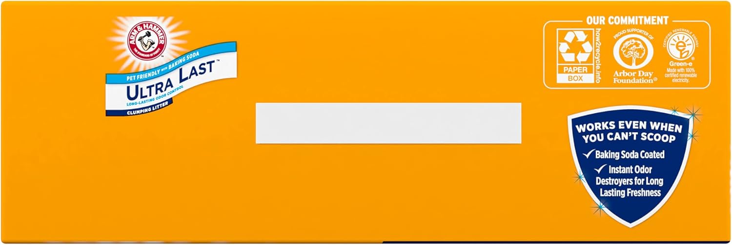 ARM & HAMMER Ultra Last Unscented Clumping Cat Litter is a smart choice for cat care & hygiene, powered by pure ARM & HAMMER Baking Soda which works as an odor neutralizer. This clumping litter provides odor control cat litter benefits, ensuring a clean and refreshing unscented experience with ultra long-lasting odor elimination & control. Perfect for those seeking multi cat litter solutions, it excels in clumping efficiency. Designed for dust control & low-dust performance, it offers a dust free environment, making it ideal for those prioritizing non tracking cat litter. Choose ARM & HAMMER Cat Litter for a comprehensive approach to cat care and hygiene.