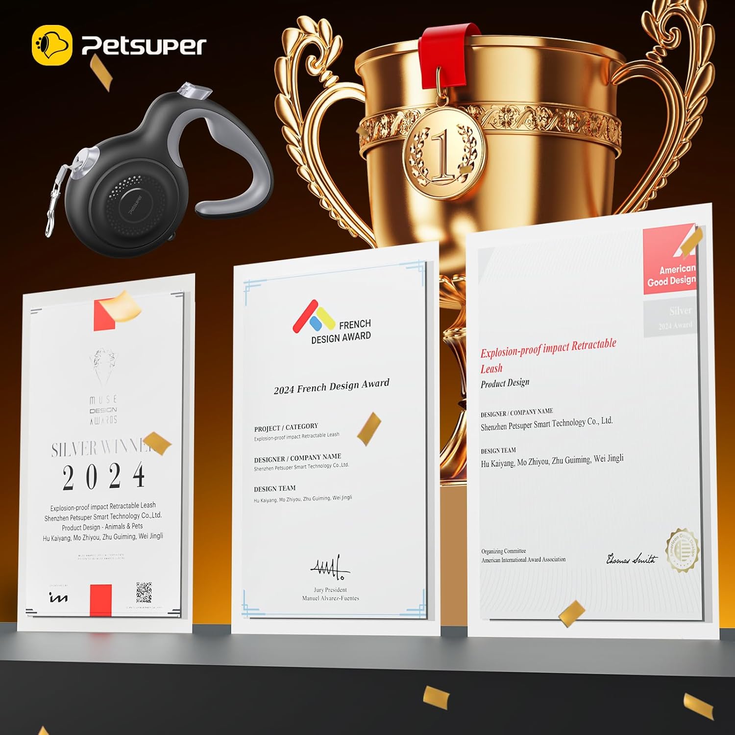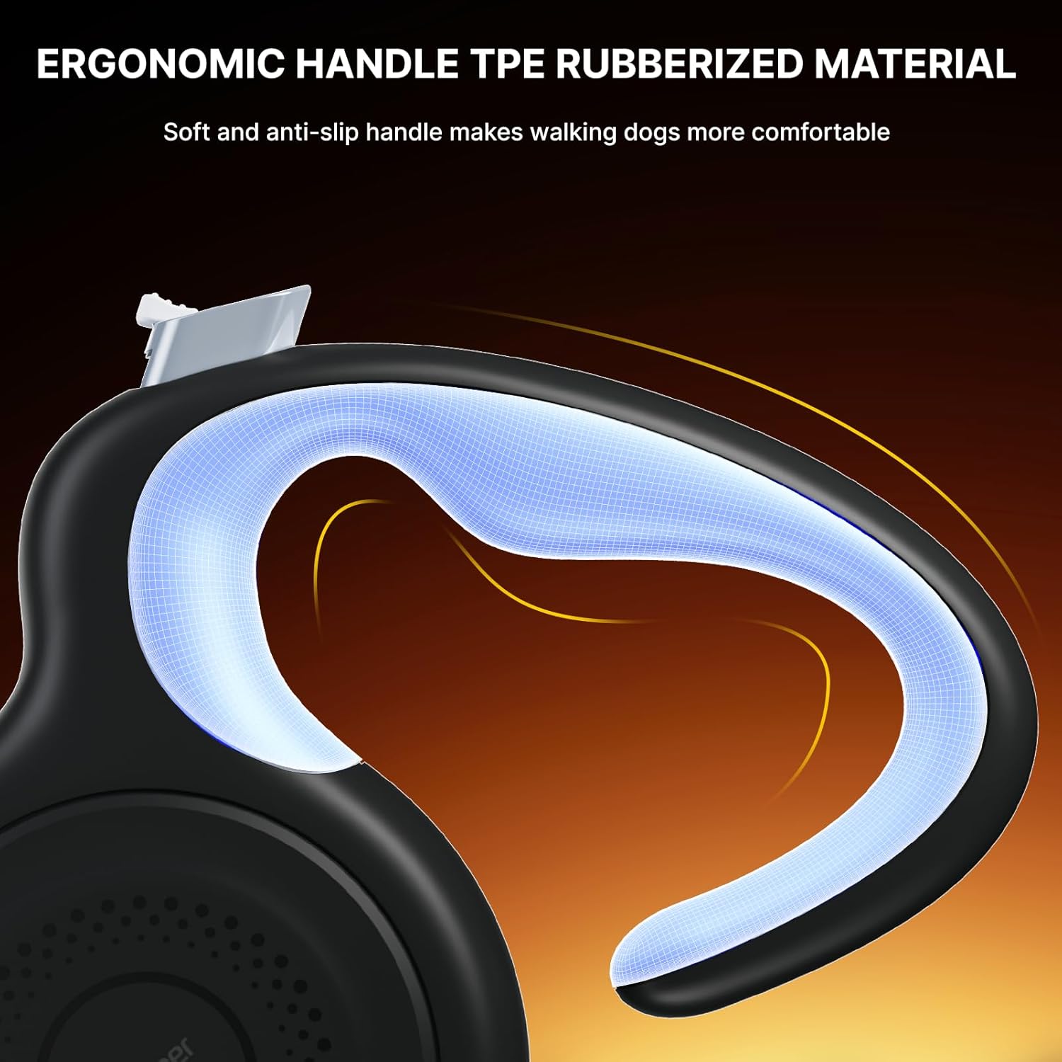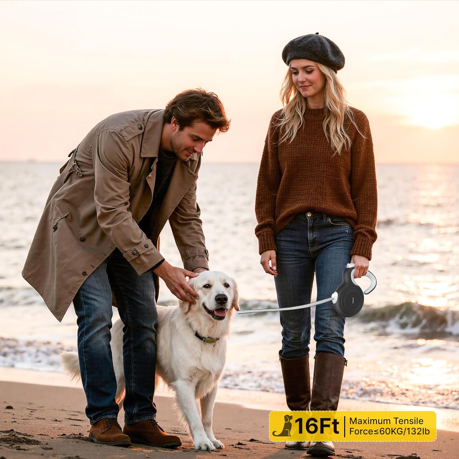 About this item 16FT Retractable Dog Leash – Lightweight & Strong for Dogs Up to 88 lbs Designed for small, medium, and large dogs, this durable yet lightweight retractable leash weighs only 1.12 lbs and extends up to 16 feet. It offers both freedom and safety, giving your dog room to explore while staying securely by your side. Auto-Brake Safety System & Smooth Retraction Equipped with an innovative automatic brake mechanism, the leash instantly locks when your dog pulls or sprints unexpectedly. The built-in shock absorption helps prevent injuries—working like a car seatbelt for your pet. A high-quality stainless steel spring ensures fast and smooth rewinding. Premium Build with Heavy-Duty Materials Made with a tough ABS housing, an extra-wide nylon tape, and a rust-resistant stainless steel clasp, this leash stands up to daily use and strong pullers. From walks in the park to adventurous trails, it offers lasting performance season after season. Comfortable Anti-Slip Grip & Tangle-Free Design The ergonomic handle is crafted from soft TPE material for a secure and comfortable one-handed grip. Thanks to the unique U-shaped exit guide, the leash rotates 360° freely, reducing tangles and providing a smoother walking experience. Worry-Free Ownership with 12-Month Warranty We guarantee quality and reliability. Your purchase includes a 12-month free replacement or return policy, backed by responsive customer support—so you can shop with confidence and enjoy peace of mind. › See more product details