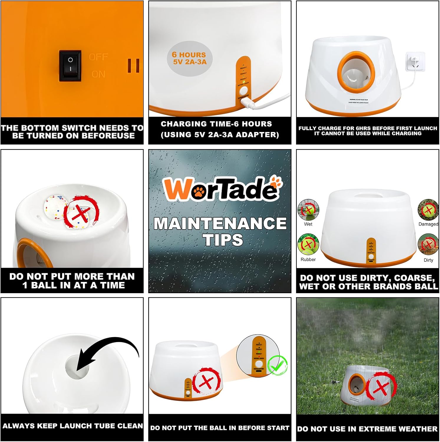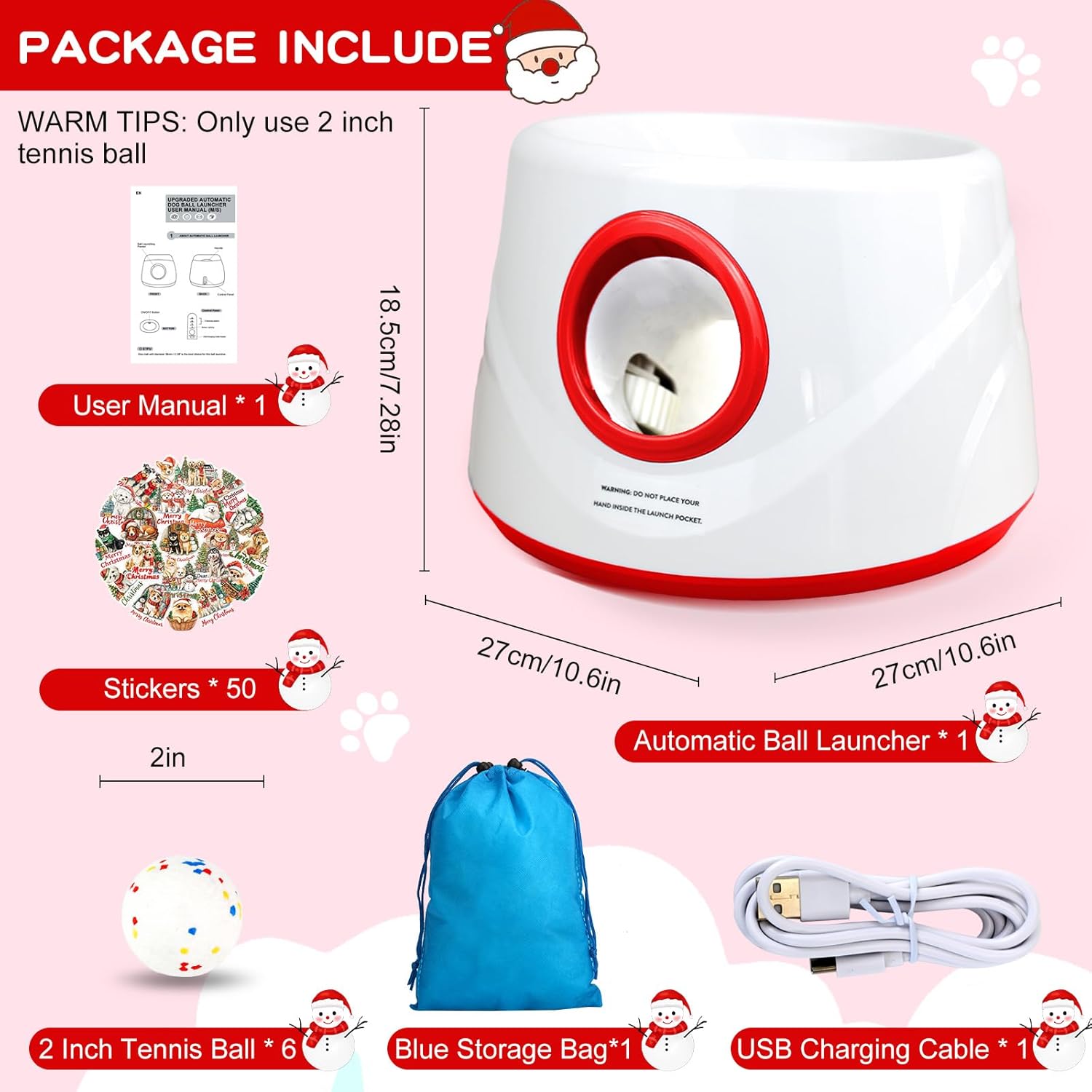 🐶Automatic Ball Launcher for Dogs: This automatic dog ball launcher is designed for small to medium dogs. The dog ball thrower launcher automatically launches 2.2inch dog balls and throws them over a long distance, stimulating the dog's nature of chasing and jumping. Meeting their needs for active play helps keep them physically healthy and mentally active. 🐶3 Adjustable Launch Distances: This dog ball launcher offers three different launch distances – 6m/19 ft,10m/32 ft, and 14m/45ft feet. You can easily select your desired distance to accommodate different play areas and your dog's energy level. Whether it's a small backyard or a large park, this tennis ball launcher for dogs will keep your dog active and happy. 🐶6 high quality 2.2 inch balls: These dog balls are made of high-quality E-TPU, which has excellent wear and bite resistance. The wear-resistant and bite-resistant properties ensure that the dog ball can withstand your dog's intense play. The 2.2-inch size is safer than other balls, reducing the risk of suffocation so you can let your dog play with confidence. 🐶Practical gift options for dogs: If you are looking for a gift for your dog or dog family, this automatic dog ball launcher is ideal. It combines practicality and entertainment, providing dogs with plenty of exercise and fun time. The automatic dog ball thrower is a special gift for dogs, just like giving them a joy that they will never get tired of. 🐶Effortless Reactivation in Seconds: Whether you get distracted by chores or your dog takes a mid-play break, the auto-standby eliminates the stress of forgetting to turn off the device, the dog ball launcher automatically enters standby mode after 30 minutes of inactivity.When in standby (all indicator lights off), no complicated steps are needed to get back to play. Simply press the Distance Setting button, or flip the bottom power switch off and on—your launcher will instantly reactivate. ⚠️ Note: It is recommended to use a 5V2A charger to charge the automatic dog ball launcher. Please read the instruction manual thoroughly before use. In addition, we do not recommend this ball toss machine for timid dogs to prevent them from being frightened. If you need any assistance or have any questions during use, please feel free to contact us, and we will provide satisfactory solutions in a timely manner. › See more product details