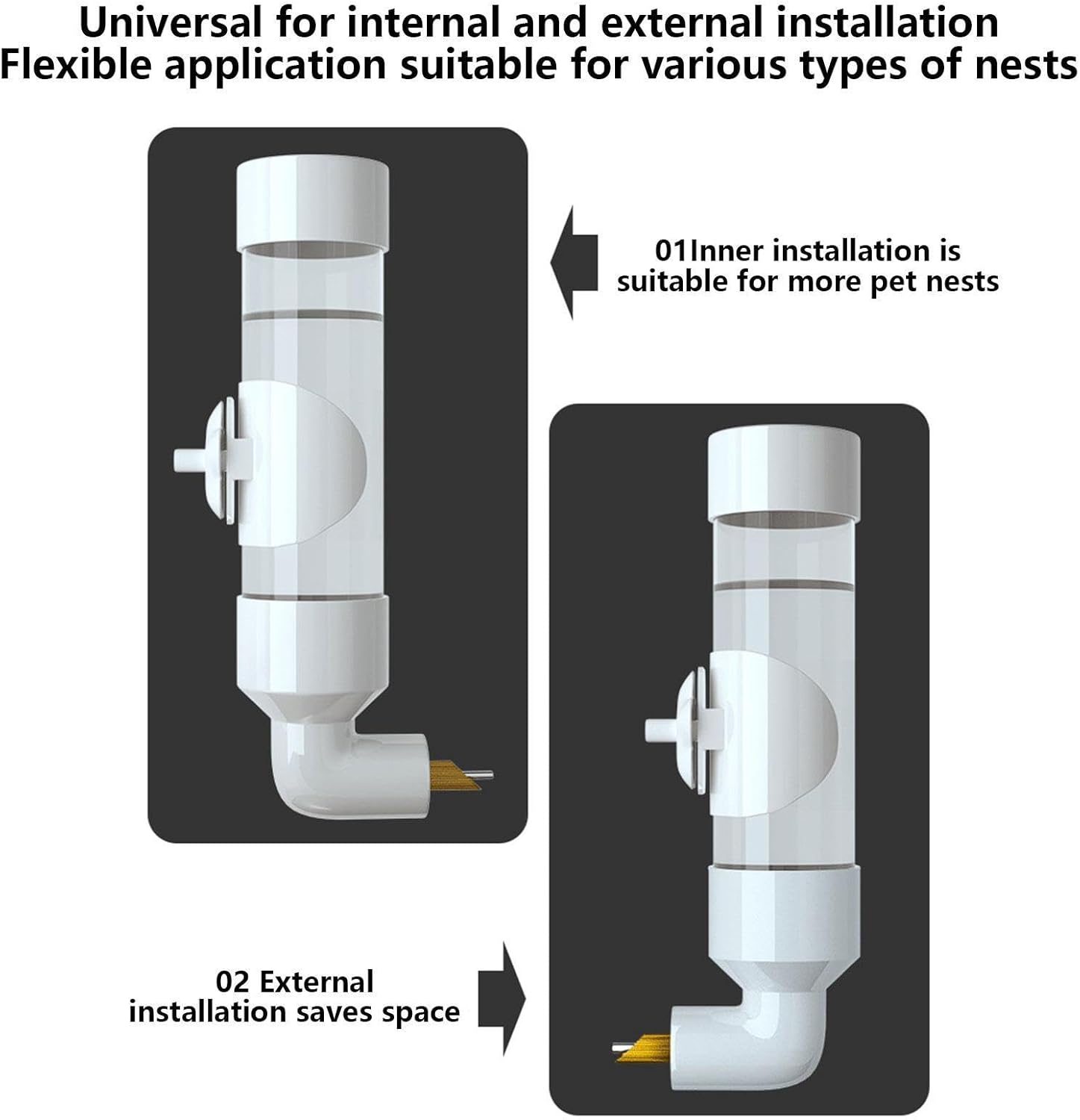 This automatic bird water bottle is perfect for your feathered friend. Can hold enough water for several days without having to refill it frequently. Convenient to use and easy to install. The needle shaped spout allows birds to drink water comfortably and safely. It also prevents water droplets from falling and keeps the floor clean. Your bird will love this water bottle. Properties: Product Name: Automatic Bird Feeder Material: PVC + acrylic + metal. Colour: white. Product specifications: 300 ml, 400 ml Size(approx): 7.5*4.2*22.3cm/3.03*1.69*8.78 inches 7.5*4.2*28.7cm/3.03*1.69*11.30 inches Packing list: 1 x automatic bird drinker