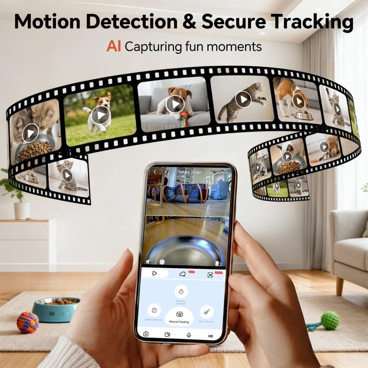 Product DescriptionNever Miss a Moment. Nourish Your Pet Perfectly.Introducing the Centvicam Smart Automatic Pet Feeder, the ultimate all-in-one solution for the modern pet parent. Go beyond simple automated feeding and stay connected to your beloved companion 24/7, ensuring they are happy, healthy, and never miss a meal—even when you're away.Crystal-Clear Monitoring, Day or Night1. Equipped with a premium 3K HD camera and a 150° ultra-wide-angle lens, you get a complete, real-time view of your pet's feeding area. Watch them eat, play, and nap in brilliant detail. When the sun goes down, the automatic night vision activates, providing a clear, black-and-white view of their nighttime activities, so your peace of mind is never interrupted.Total Control Over Your Pet’s Diet2. Say goodbye to over or under-feeding. With our easy-to-use app, you can create a fully customized feeding schedule that matches your pet's unique needs. Set specific times and precise portion sizes for up to 10 meals a day. The large 6L capacity is perfect for weekends away or maintaining a consistent daily routine, and the advanced anti-jam mechanism ensures food is dispensed smoothly every single time.Comfort Them with Your Voice, Wherever You Are3. Hear their purrs and meows, or barks and whines, and respond instantly with crystal-clear, two-way audio. Use the live feature to soothe them in real-time, or record a familiar, calming message that plays to reassure them when they're feeling lonely. The stable 5GHz Wi-Fi ensures a smooth, uninterrupted connection for seamless interaction.Insights into Your Pet’s Well-being4. Become your pet's health advocate. The Centvicam feeder tracks every meal and compiles the data into easy-to-read logs and analytics right in the app. Monitor their eating patterns over time to spot any changes early. With optional secure cloud storage, you can save and relive their funniest and most cherished moments, all shareable with your entire family.Built for Reliability and Safety5. We understand that your pet's safety is paramount. Our dual-power design ensures the feeder operates continuously, switching seamlessly to battery backup during unexpected power cuts. The specially engineered, tough, chew-proof power cord is built to withstand even the most curious chewers, providing ultimate safety and durability.Fresh Food and Easy Upkeep6. Your pet deserves fresh, tasty kibble. Our 4-Layer Freshness Preservation System is designed to protect food from humidity and staleness. Combined with easy-to-clean, removable components, maintaining your pet's feeder is as simple as it is effective.What’s in the Box?1 × Centvicam Smart Automatic Pet Feeder1 × Stainless Steel Food Bowl1 × Power Adapter1 × User Manual1 ×Desiccant BagSpecifications:Food Container Capacity: 6 LitersWi-Fi Bands: 5GHz & 2.4GHzCamera: 3K HD with 150° Wide-Angle Lens & Night VisionMeal Settings: Up to 10 meals per day, 1-15 portions per mealPortion Size: Approx. 8-10 grams per portionPower Supply: AC 100-240V + 3×D Batteries (Not Included)Compatible Food: 2-15mm Dry KibbleGive your pet the gift of consistency and yourself the gift of peace of mind. Click "Add to Cart" now!