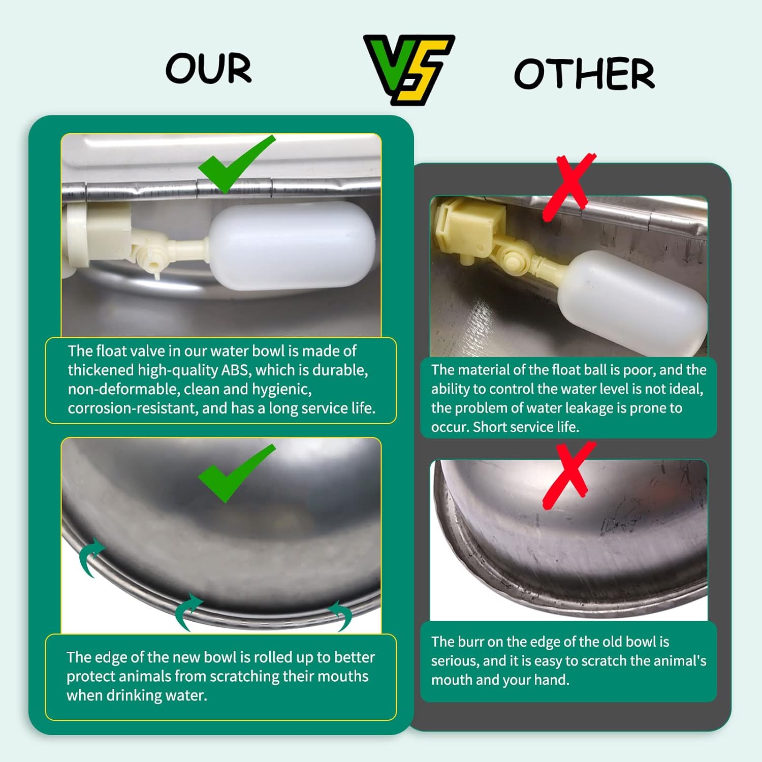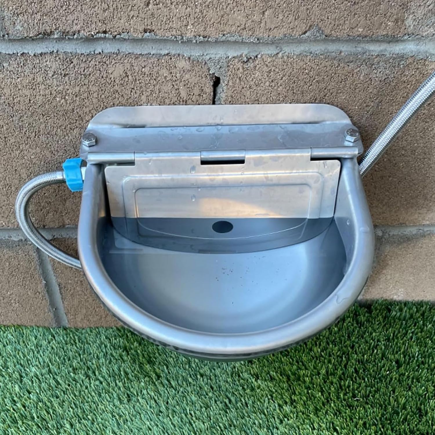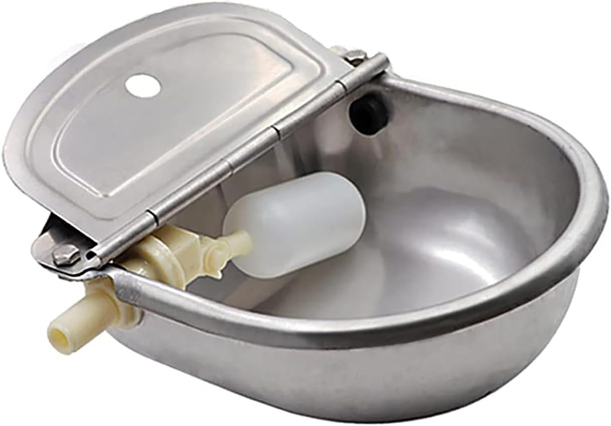 About this item -Automatic animal waterer bowl,which obviously save more than 30% of the water, reduce the sewage , and keep water clean. It suitable for horse, cow sheep, pig,dogs, chicken drinking water.Package include: 1 pcs water bowl only, no water hose. -Heavy duty stainless steel: Made of 304 stainless steel, no rust, anti deformation, clean and sanitary. Smooth edge polished to avoid traumatic infection the caused by scratching. -Automatic Design : The use of float water level floating principle control the inlet and outlet water switch, to achieve a constant water level effect. And the filter at the entrance of water fountain to ensure clean water. It can keeps enough water and always clean water. -Large capacity:About 0.66 gallon water capacity. There are 2 hole at the back are convenient to attach this waterer to the wall.(Mounting screws and hose not included ) --About Service: If you have any questions about the product, please contact us directly. The most important thing is that if you are not satisfied with the product you received, you can contact us directly, and we can provide you with a refund or return service › See more product details