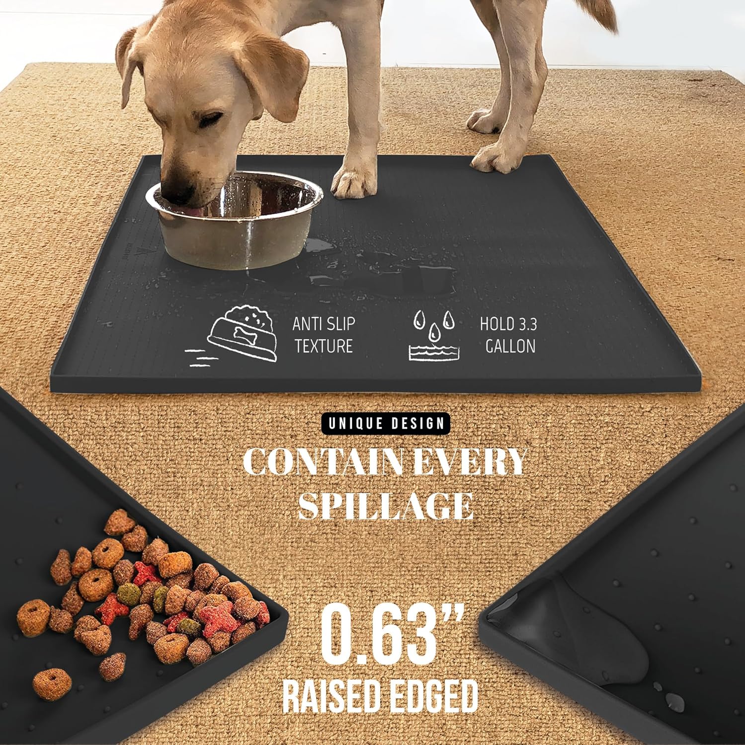 The AVERYDAY Feeding Bundle includes one 3-in-1 Slow Feeder Dog Bowl set and one 32x24'' Silicone Dog Mat. Designed for cleaner, healthier mealtimes, this bundle helps your dog eat slowly while keeping the feeding area tidy. The 3-in-1 Slow Feeder features two interchangeable maze inserts to reduce fast eating and improve digestion. The sturdy 8-cup base works as a regular bowl for wet, dry, or raw food. The 32x24'' Silicone Mat offers full protection for your floors with raised edges and a waterproof, non-slip design - perfect for messy eaters. Together, they make an ideal feeding solution for small, medium, and large breed dogs.