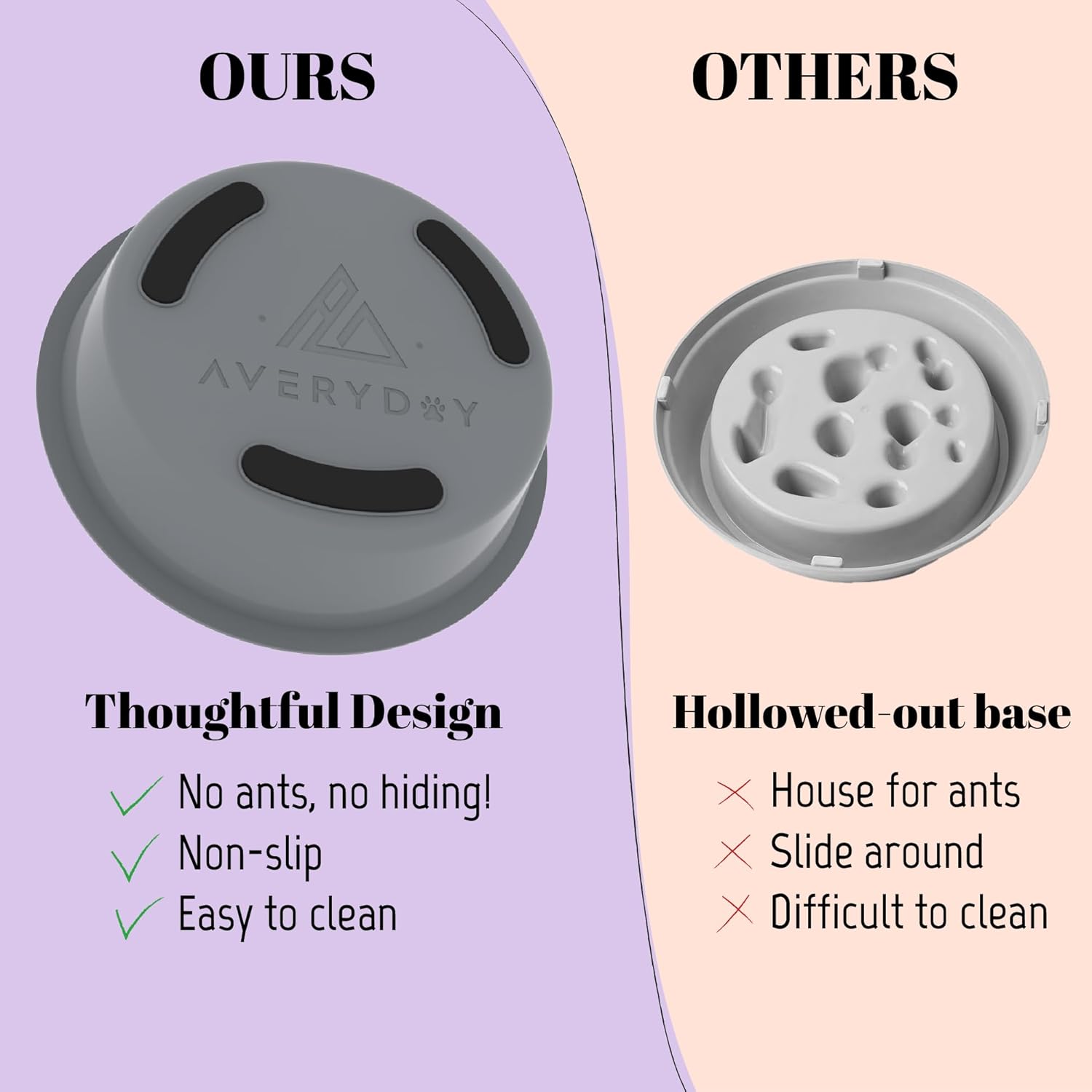 About this item Mental Stimulation: Averyday slow feeder dog bowls with a rotating slow feeder bowl insert engages dogs' minds while slowing down fast eaters for healthier mealtime pacing Ten More Minutes: AVERYDAY slow eating dog bowl for small medium breeds with an adjustable slow feeder insert to affectively reduce the risk of bloating and indigestion by slowing down their eating speed Precise Eating: The 1.5 cups dog food bowl slow feed helps control portion sizes, preventing your dog from gulping down their food too quickly. Suitable for both dry and wet food Thoughtful Design: Anti-slip bottom slow feeder dog bowl ensures stability during excited eating; maze dog bowl with narrow angle design is dishwasher-safe, making cleaning easy and efficient Perfect Size: The AVERYDAY puzzle bowl dog feeder has a lip to fit in the raised dog bowls that has 6.38-6.69" opening › See more product details