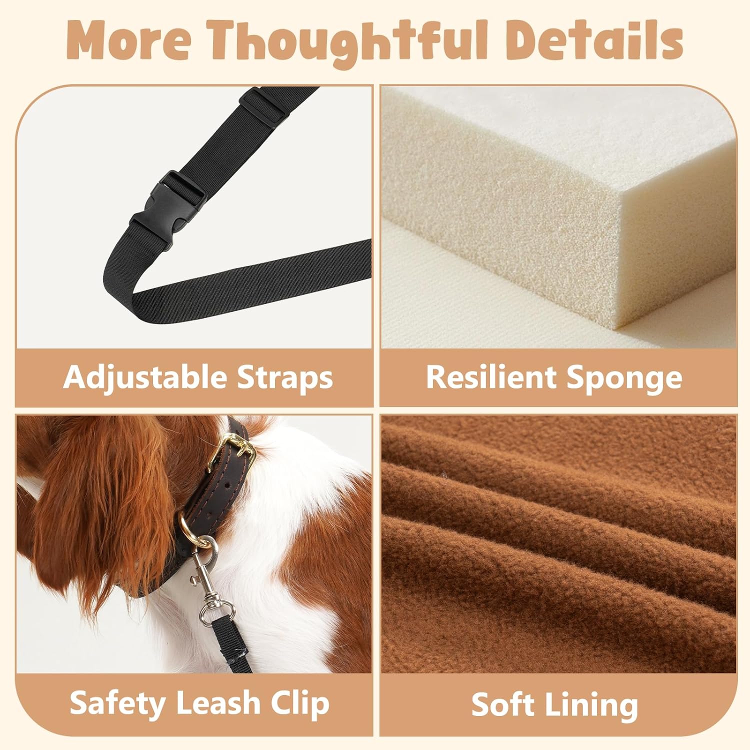 About this item Elevated View for Less Anxiety – 5.9" (15 cm) height boost gives pets a better view of the road, more space to move, and reduced travel stress Secure, Universal Fit – Adjustable back strap wraps around the headrest, bottom strap threads through the seatbelt, plus safety leash clips to your pet’s collar; fits most front passenger and back seats Comfortable & Supportive – Sized at 20 × 20 × 16 in, ideal for pets under 30 lb; high-resilience foam base and PP-cotton bolsters offer cushioned support and all-around protection Multi-Purpose Design – Works as a cozy travel bed at home, in the car, or on trips like camping, giving pets a familiar and comfortable resting spot anywhere Removable & Washable Cover – Easy to clean for lasting freshness; Please note: arrives vacuum-packed—allow 72-96 hours for full shape recovery › See more product details