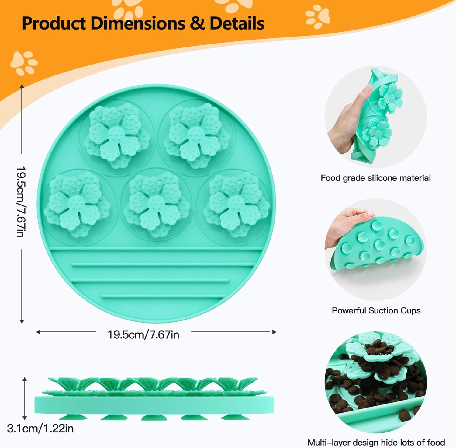 About this item HEALTHY EATING MADE FUN: Our Slow Feeder Dog & Cat Bowl challenges and engages your pup during mealtime, reducing overeating and promoting proper digestion. Say goodbye to bloating, regurgitation, and obesity! Improve Digestion & Reduce Anxiety: Our lick mat promotes healthier teeth and reduces indigestion, while also enhancing intelligence and reducing boredom Keep Your Pet Entertained: Our lick mats feature super-strong suction cups that can be attached to walls, glass, and refrigerators, making them perfect for distracting your pet during bath time, grooming, and nail trimming. EASY TO CLEAN: Our Slow Feeder Dog Bowl is top-rack dishwasher safe, making cleaning a breeze. Spend less time cleaning and more time playing with your pup! Reduce Anxiety and Boredom: Our lick mats are great for calming pets and reducing anxiety during stressful times like vet visits, thunderstorms, and fireworks. They also help suppress destructive › See more product details