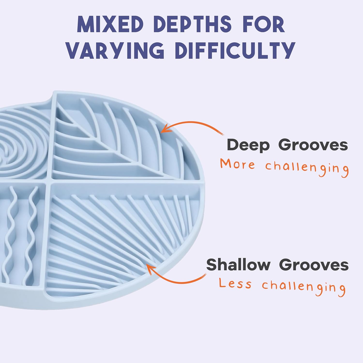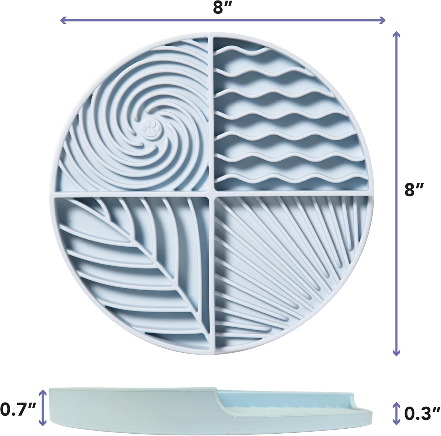 About this item MEALTIME MADE AWESOME - Slow down their eating time to aid digestion and support dental health. Just spread out their favorite wet or dry foods for longer, mentally stimulating mealtimes, or as powerful training and calming tool. FOOD SAFE & EASY TO CLEAN - Each dog and cat-friendly Awoo enrichment feeder is crafted from safe and durable food-grade silicone, which is BPA-free, PVC-free, phthalate-free, and plastic-free. Our materials are dishwasher safe and can also be used in the freezer or microwave to prepare tasty, engaging treats for your pets. REDUCE ANXIETY DURING GROOMING - Offer your furry friends a soothing sensory distraction during activities from bathing to nail trimming, to help create a more positive association with these moments. Our busy mat design includes suction cups that mount on any smooth surface, like floors or shower walls, for a more relaxed bathtime. MIXED DEPTHS FOR VARYING DIFFICULTY - The deep grooves of this universal feeder mat offer greater challenge, while the shallow grooves provide easier access to everything from peanut butter to meats, fish, fruits, and veggies. Cats, kittens, dogs and puppies of all breeds and sizes will fall in love with the stimulation of the four textured sections! MEET THE AWOO FAMILY - As designers and pet parents, we are deeply committed to creating safe, environmentally-friendly products you can trust. We use the highest quality non-toxic materials for your peace of mind, and the most conscious, earth-friendly and ethical production practices for a sustainable future. › See more product details