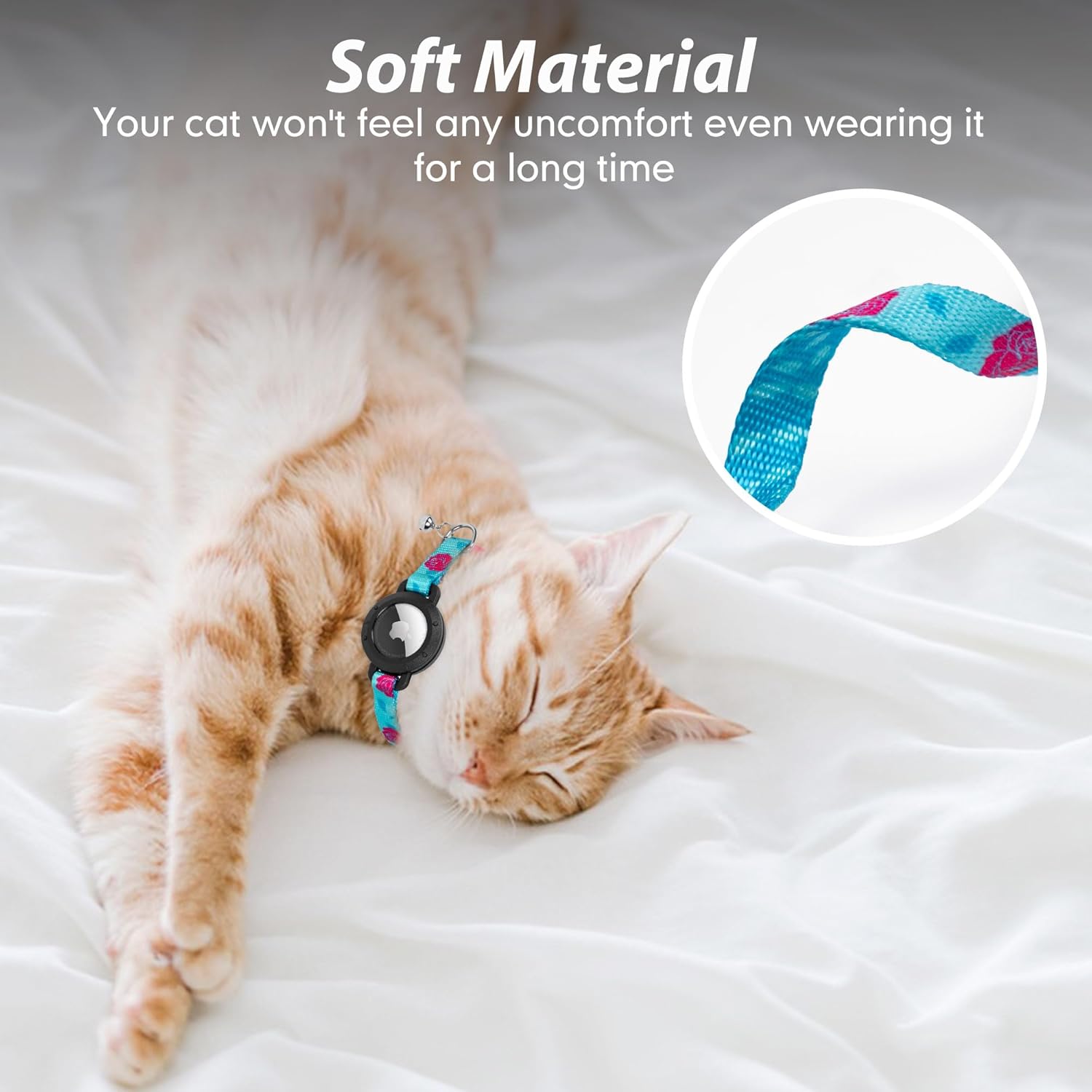 About this item Integrated AirTag Cat Collar- As we know, traditional separate AirTag holder easily getting lost and wobbling in cat's neck. So azuza cat collar adopt integration with airtag holder, fits the AirTag perfectly, can protect your AirTag from losing, also say goodbay to losing your cat. (AirTag is not included) Safety Breakaway Buckle - azuza cat Airtag collar is designed with a secure breakaway buckle that ensures your cat's safety. It allows your cats to swiftly break free during outdoor adventures. Size - azuza AirTag cat collar is adjustable from 8" - 12" x 0.4" wide. Please measure your cat carefully before ordering, making sure to leave 2 fingers between the collar and your cat's neck. Lightweight & Comfortable - azuza Airtag cat collar is made of high quality nylon that won't hurt your cat's skin or cause any allergies. With the lightweight AirTag holder, your cat won't feel any discomfort even when wearing it for a long time. A lightweight cat collar is just what you need to keep track of your beloved cat! Various patterns option - The cat collar with Airtag holder boasts multiple patterns elevate your cat's style while ensuring their safety. In addition, its bell emits a clear sound, helping you locate your pet. › See more product details