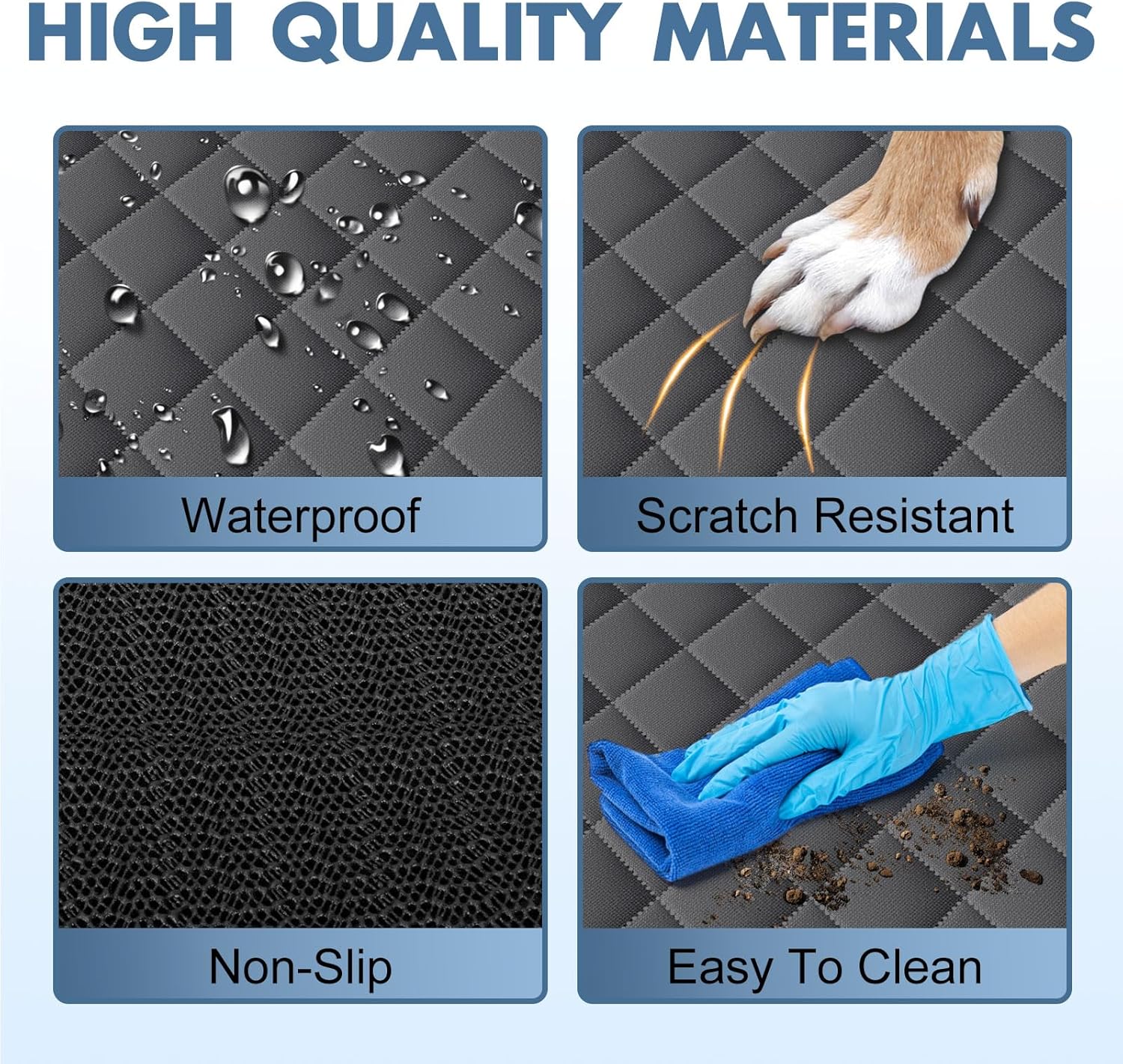The car rear seat fully wrapped pet mat is designed to protect beloved pets and cars. The car pet mat is made of waterproof material, which can effectively prevent pet urine, feces and other stains from penetrating and keep the mat clean. Meanwhile, it is easy to clean by simply wiping with a damp cloth. The bottom of the mat has anti slip design to ensure that pets will not slide during driving. Full surround design, this design can protect the seats of your car in all directions, preventing pets from scratching or dirtying the seats.