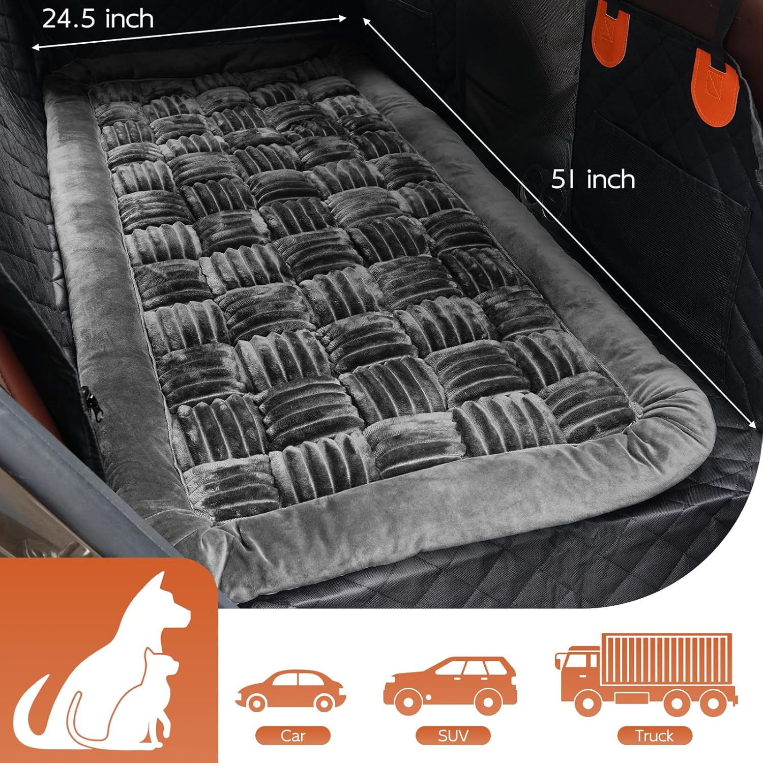 About this item 【Dog Bed for Backseat Extender】Turn the back seat into a cozy lounge with this dog car seat cover. Put it on a backseat extender for limo-level legroom, or lay it solo to keep fur, drool, and claw marks off your upholstery. Fits most cars, SUVs, and trucks 【Comfortable and Soft】This ultra soft dog car seat cover, made of dense flannel and high-resilience PP cotton, stays fluffy and soft with long-term use 【Non-Slip Bottom】The dog bed mat features a non-slip bottom, ensuring the dog bed stays securely in place even when the vehicle turns or the pet moves around. Fits a variety of car models and can cover the entire backseat 【Easy to Clean & Machine washable】Ideal for pet owners who need to clean frequently, this dog car seat cover is machine washable, durable, and easy to maintain. 【Multi-purpose】The dog bed cover can be rolled up for easy carrying. Can be used as a dog bed under a seat or on the floor. Also suitable for some sizes of sofas (please measure the size of the seat when purchasing) › See more product details