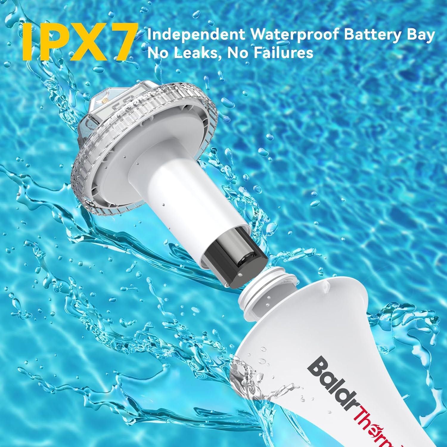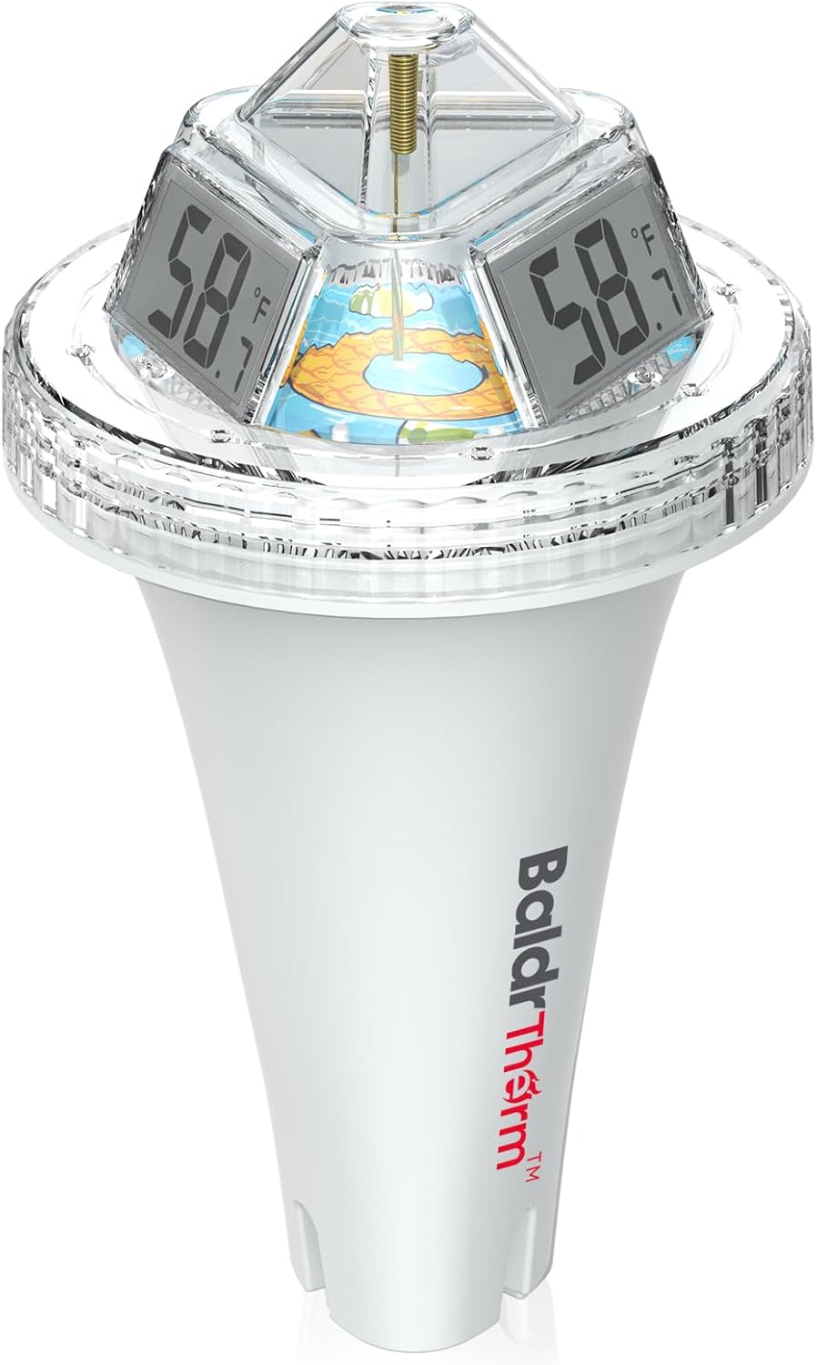 About this item 360° Clear View & Reliable Precision – Featuring a 360° visible design with an angled shape, this pool thermometer lets you grab quick-glance readings easily—whether you’re by the poolside or in the water. Equipped with high-precision sensors, it delivers accurate, trustworthy data (±1°F/°C) and auto-refreshes every 5 seconds, keeping you in the know about real-time temperature changes. Anti-Fog Technology & IPX7 Waterproof Protection--Built with a fully sealed structure, waterproof gaskets, and ultrasonic sealing, this digital pool thermometer blocks water vapor from entering—no fogging issues to obscure readings. Boasting an IPX7 waterproof rating, it can handle full submersion in water while maintaining precise measurements, so it works flawlessly even in wet conditions. Versatile for All Water Spaces--With its compact, sleek design, the BaldrTherm floating pool thermometer is perfect for measuring liquid temperatures across scenarios. Use it in swimming pools, hot tubs, ice baths, spas, aquariums, koi ponds, baby pools, or any space where you need to track water temperature reliably. More Accurate and Sensitive: The pool thermometer uses high-precision sensors to ensure more accurate and reliable data (Accuracy: ±1°F/°C). And the thermometer automatically updates data every 5 seconds, keep you updated on the temperature changes in the swimming pool at all times. Comprehensive After-Sales Support – Your satisfaction is our top priority: ① Enjoy a 3-year extensive warranty from BaldrTherm for long-term peace of mind. ② Each package includes a detailed instruction manual to guide you through setup and use step by step. ③ Our 24/7 online customer support team is always ready to assist with any questions or concerns. Buy with complete confidence! › See more product details