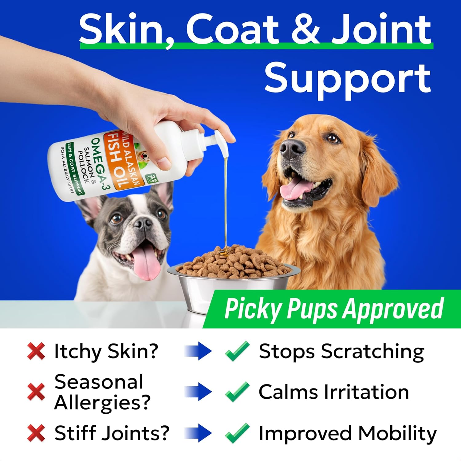 - Specific Uses for Product: Food Allergies, Itchy Skin Relief, Joint Health, Shedding, Skin & Coat Health